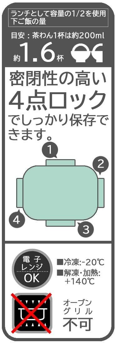 液漏れしにくい密閉性の高い4点ロックでしっかり保存、汁漏れの心配がなく安心して持ち運べる