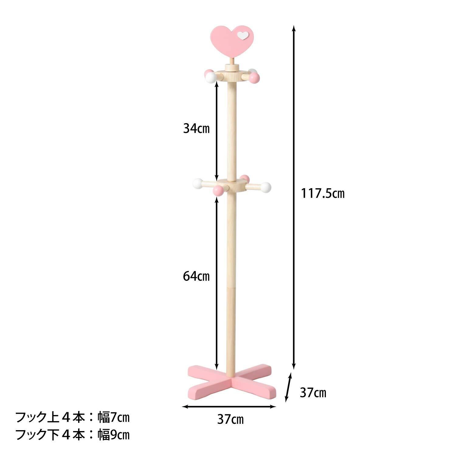 不二貿易(Fujiboeki) キッズハンガー 子供用 ポールハンガー 幅37×奥行37×高さ117.5cm ハート 天然木 上部回転 組立商品 91799