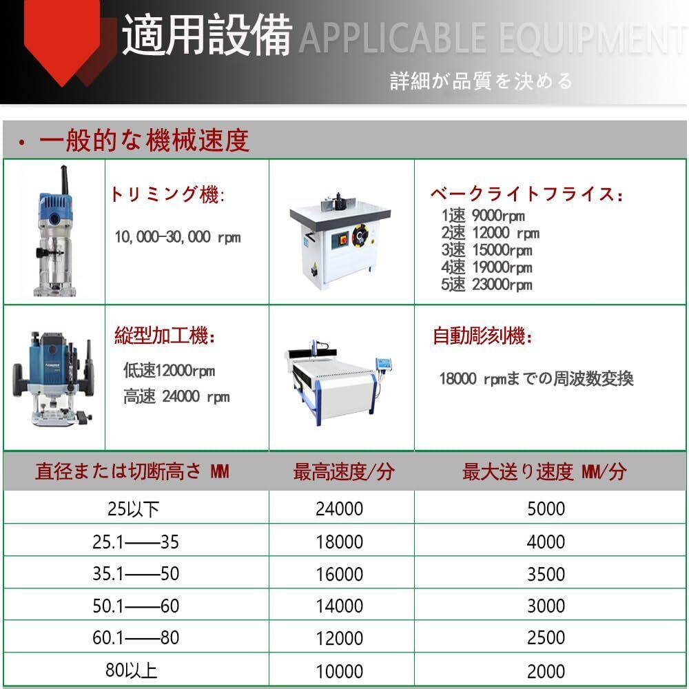 【適用範囲が広い】溝ほり・面取り・飾り面加工などに。木材、 実木、中繊板、アクリル、泡、広葉樹、 pvc 、合板等適用します。