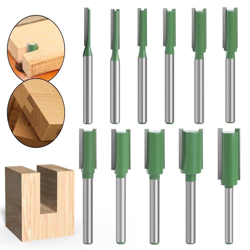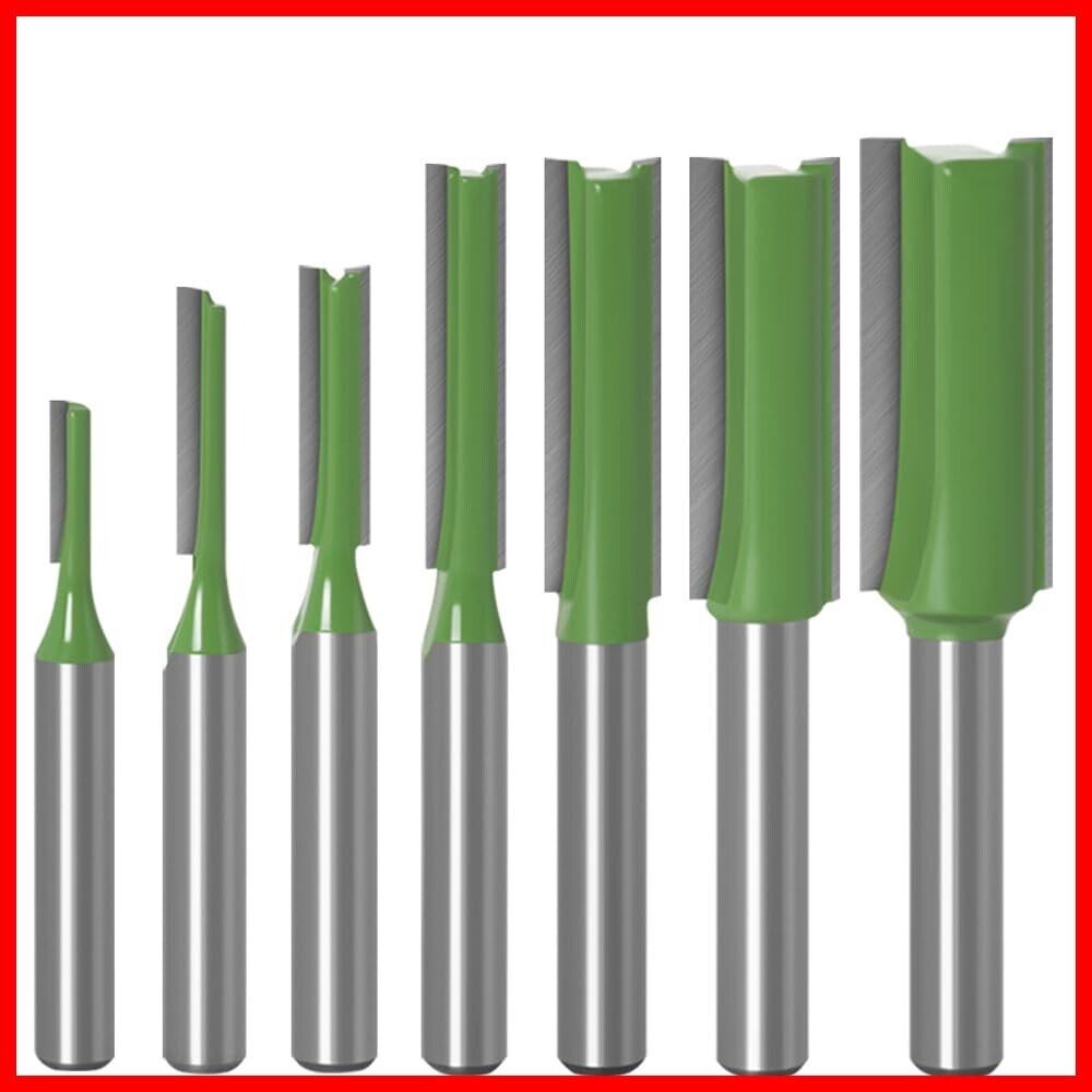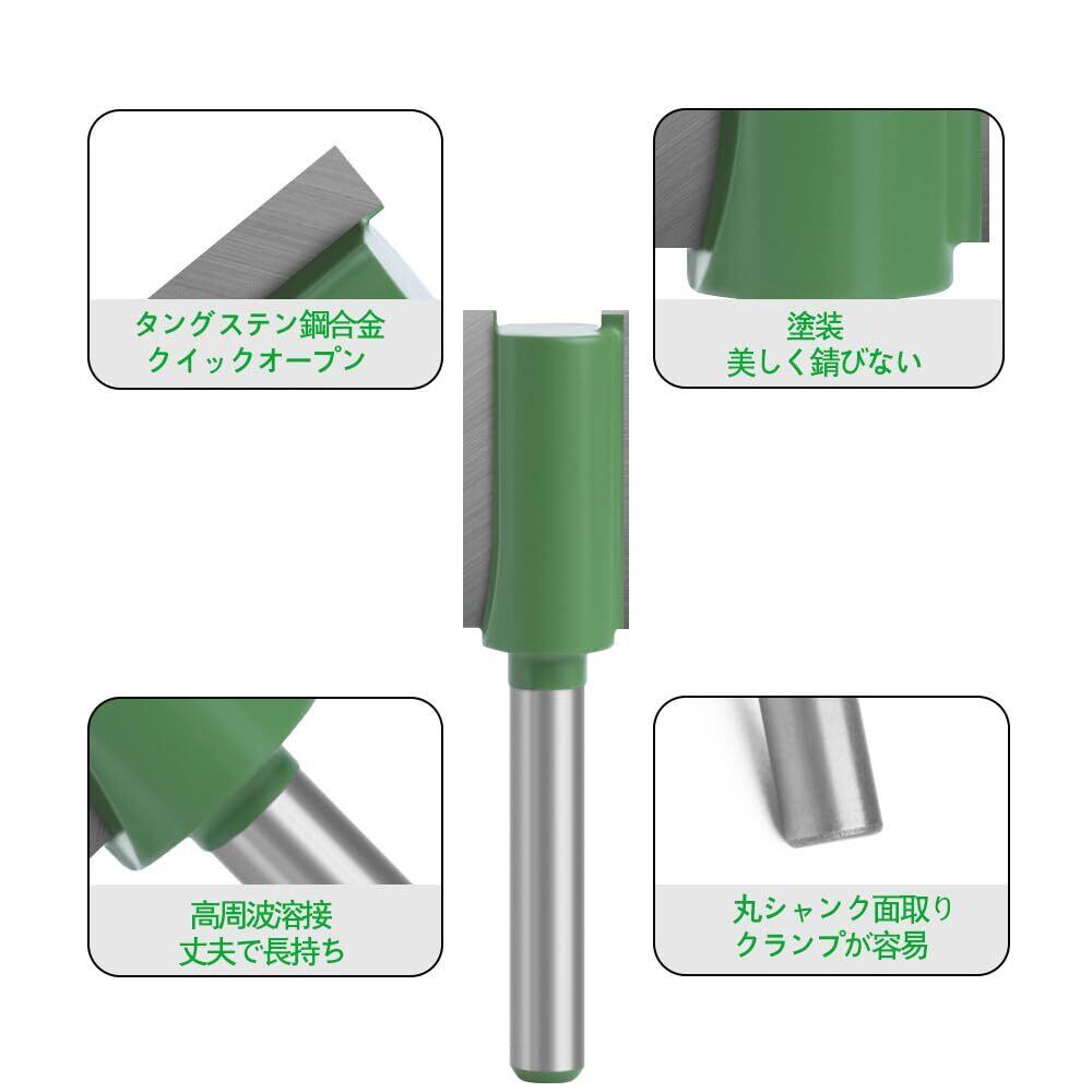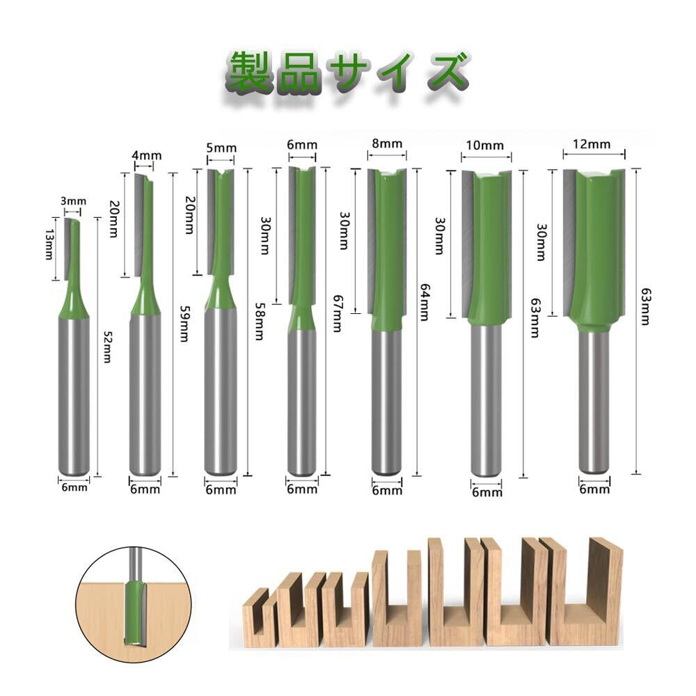 VIVIZHWHトリマー ビット シングル/ダブルフルートビット 超硬ビット ルータービット トリマービット 舌・溝カッター 木工用工具 6mm軸 7本組 緑