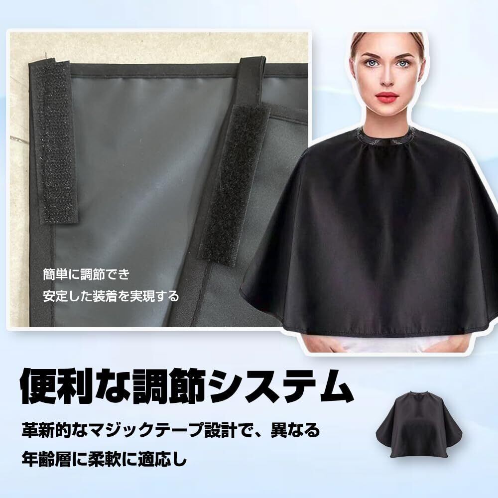 [KEAIDUO] 散髪ケープ 散髪マント 美容院 理容室 自宅 ヘアカット シャンプーケープ 防水 静電防止 調節可能 大人 子供 兼用 散髪道具 ヘアーエプロン 80 cm×72 cm 黒 使い回し 着脱簡単