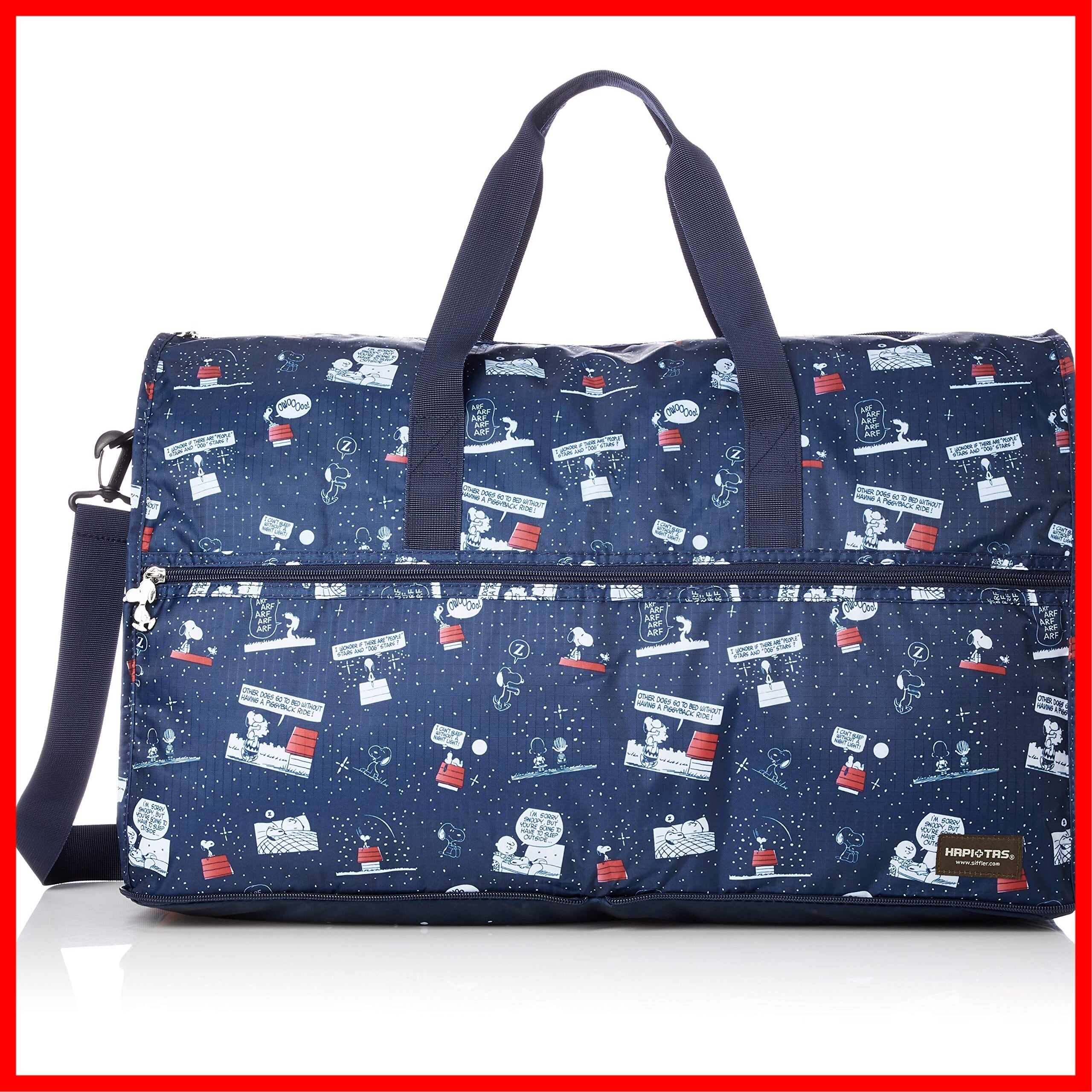 スヌーピーのコンパクトにたためる折りたたみボストンバッグ。