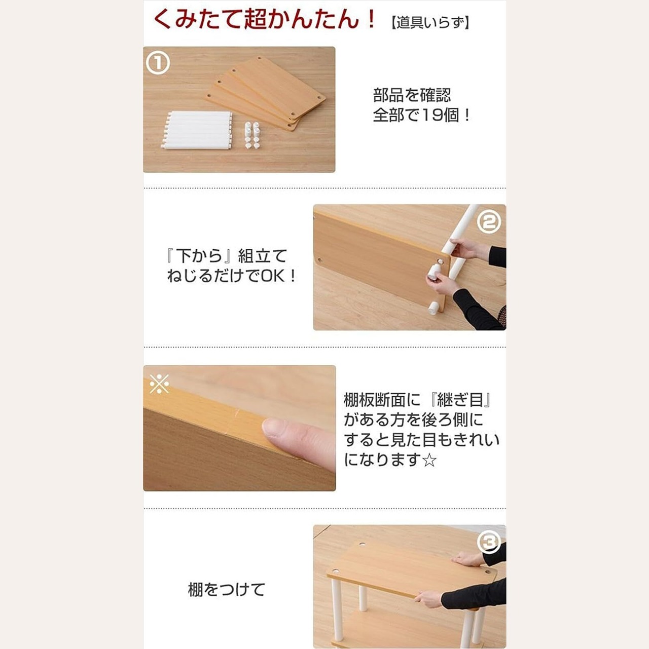 材質:支柱=ポリエチレン、ポリプロピレン、棚板=プリント紙化粧パーティクルボード