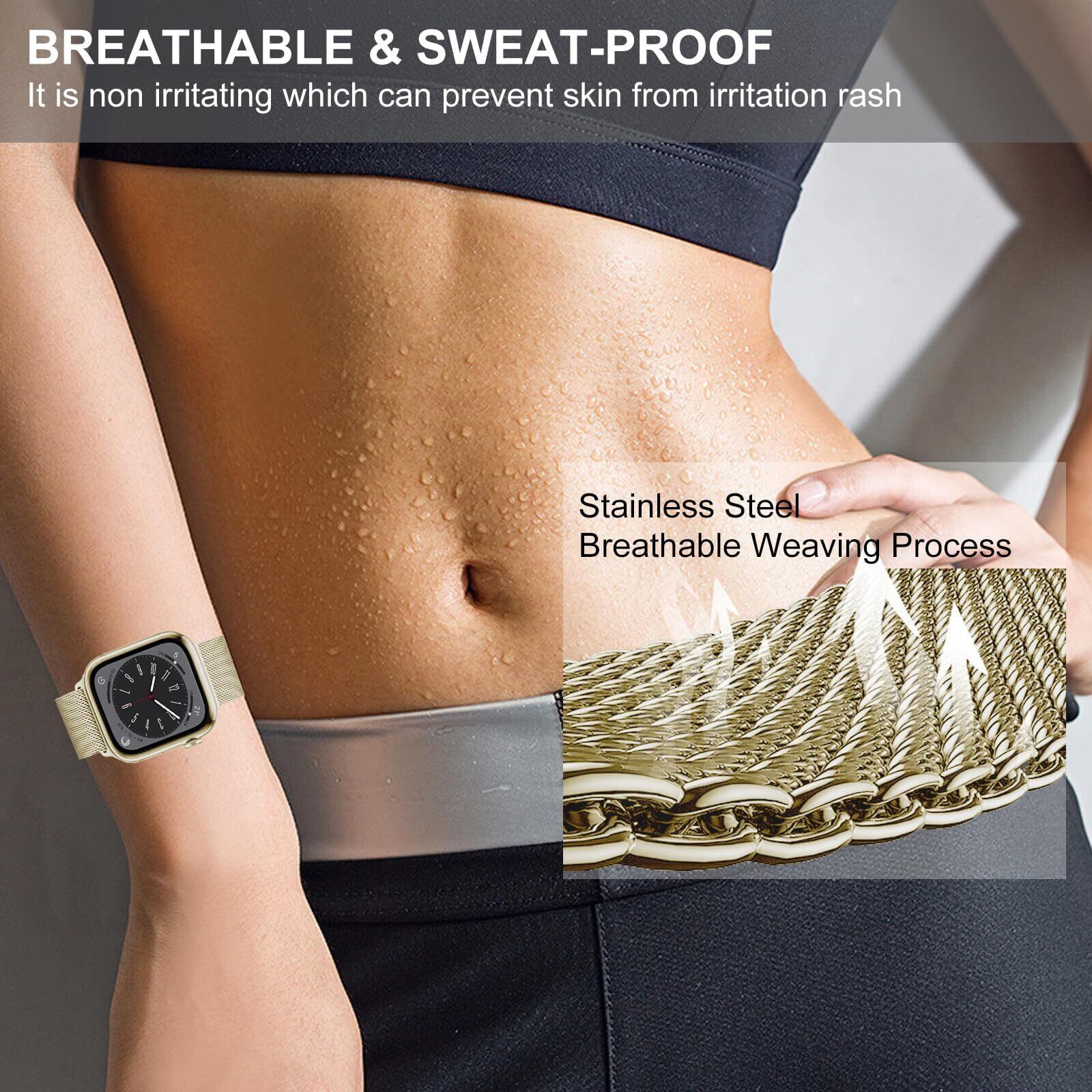 コンパチブル Apple Watch バンド 38mm 40mm 41mm 42mm アップルウォッチバンド バンド ステンレス コンパチブル 男女兼用 長さ調節 通気 メッシュ ベルト Apple Watch Series 10/9/8/7/6/5/4/3/2/1 SE に対応 スターライト
