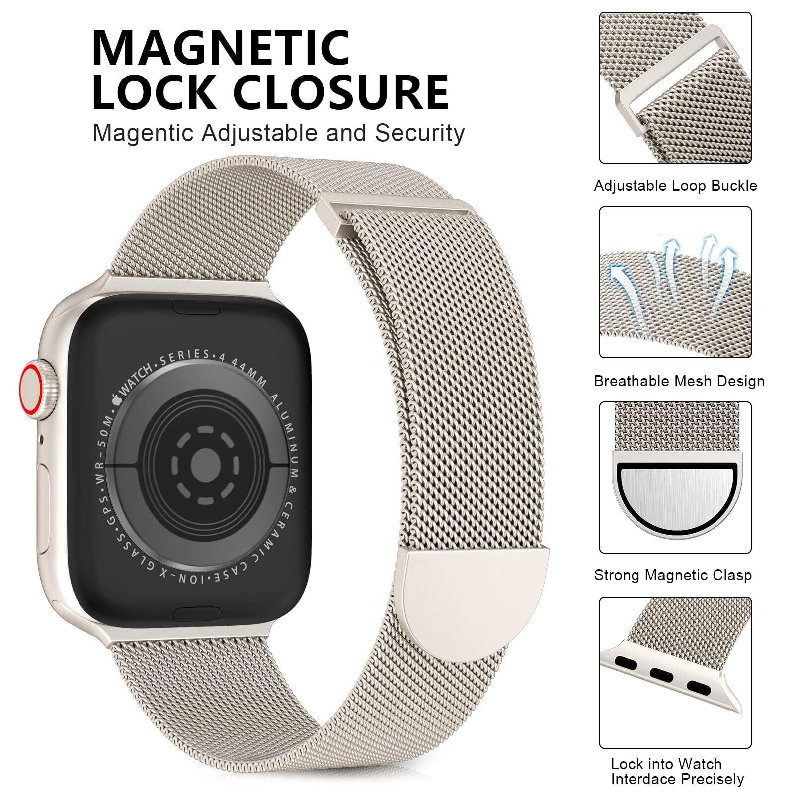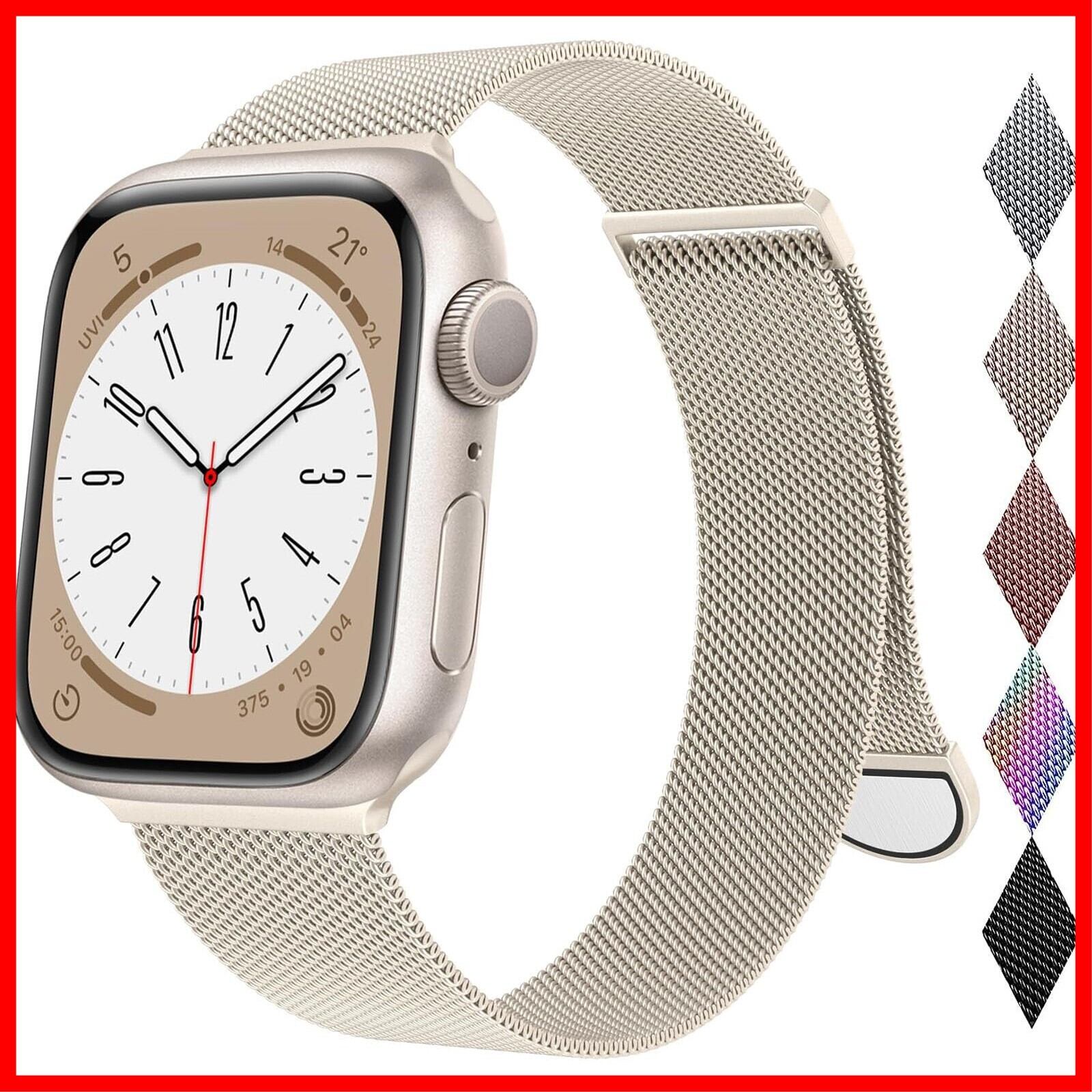 コンパチブル Apple Watch バンド 38mm 40mm 41mm 42mm アップルウォッチバンド バンド ステンレス コンパチブル 男女兼用 長さ調節 通気 メッシュ ベルト Apple Watch Series 10/9/8/7/6/5/4/3/2/1 SE に対応 スターライト | hananoki