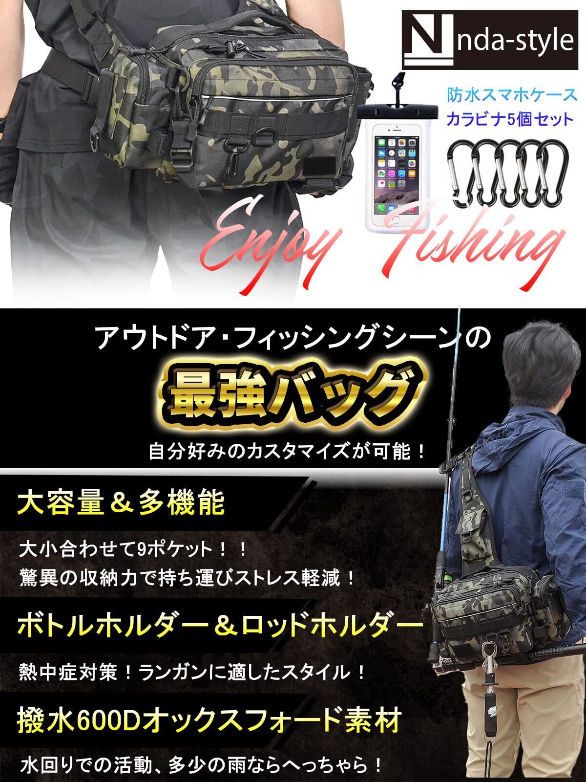 nda-style 釣りバッグ フィッシングバッグ ショルダーバッグ 多機能 大容量 タックルバッグ ランガン カラビナ5個 防水スマホケース付き