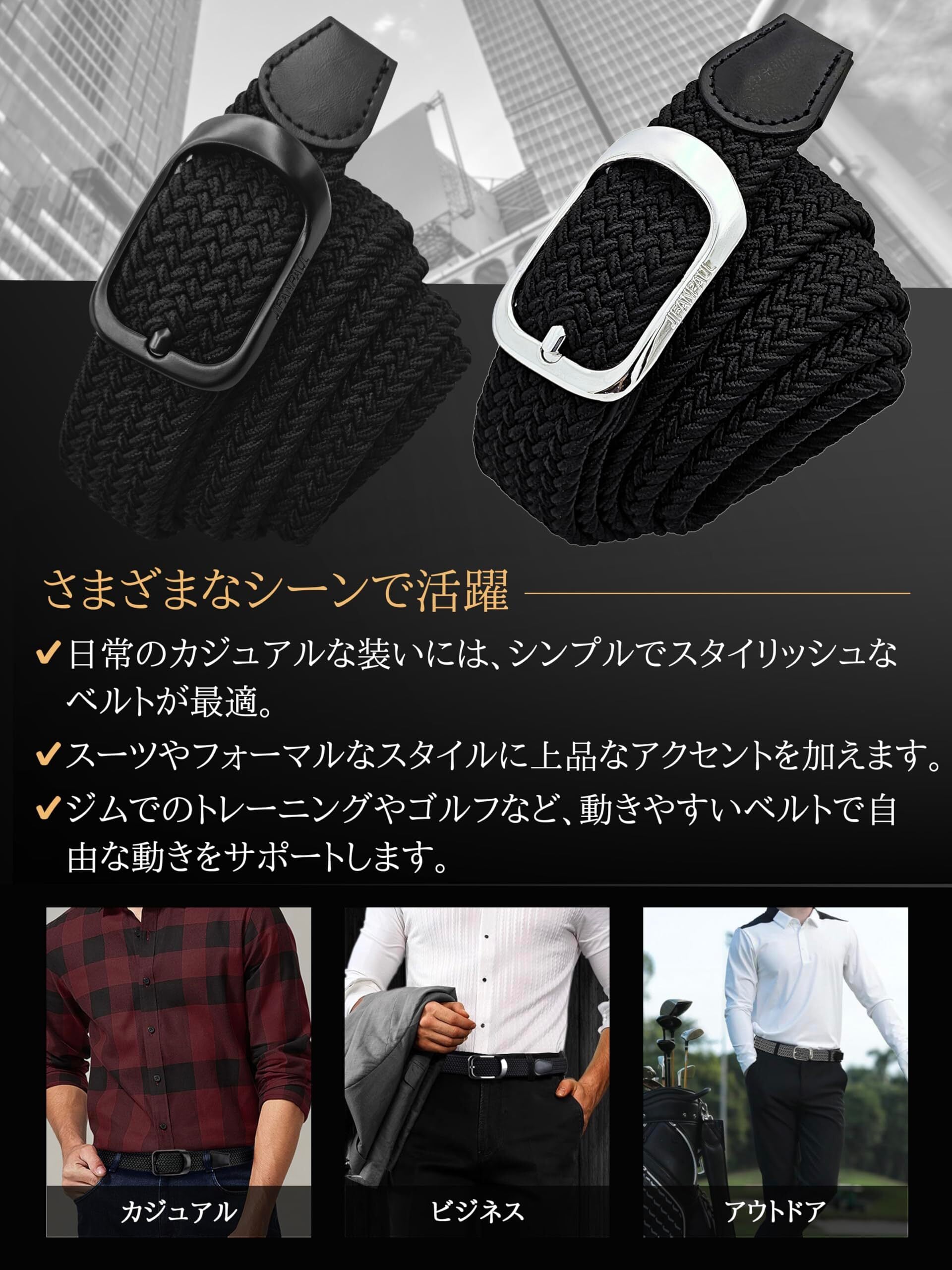 【使い勝手抜群|幅広いシーンに対応】 こちらのメッシュゴムベルトは、ビジネス、会社、通勤、オフィス、出張などのフォーマルシーンはもちろん、普段使いやカジュアルファッション、学生制服、旅行やトラベル、アウトドア、キャンプ、釣り、ゴルフ、スポーツなどあらゆる場面で活躍します。春・夏・秋・冬のオールシーズン対応で、誕生日、父の日、クリスマスなどのプレゼントやギフトにも最適です。