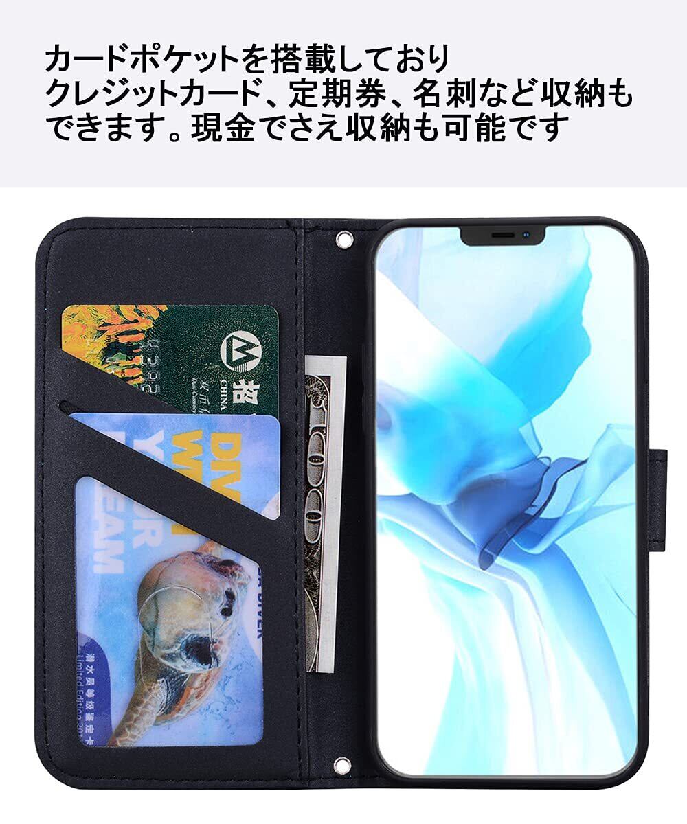❷【収納性・財布型】ケースの裏側にカードポケット2つ,クレジットカード、idカード、定期券を収納可能、透明ポケットに写真、名刺入れも可能です。❸【横置きスタンド機能付き】動画の視聴やテレビ電話などを長時間行っても疲れません、新幹線、飛行機の中で暇つぶしに最適。