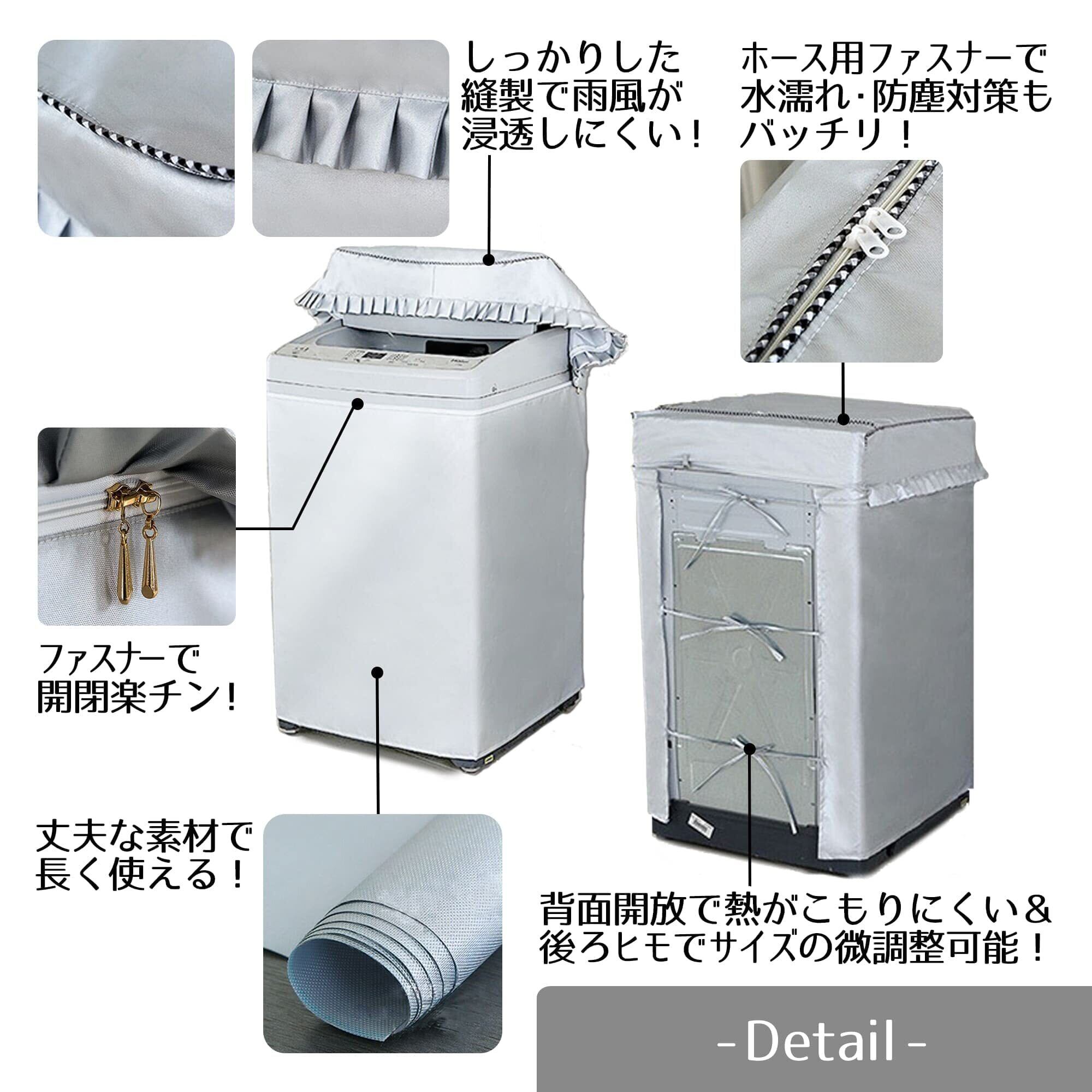 【簡単設置・簡単調節】洗濯機上部からスッポリはめて背面の調節紐を結ぶだけで簡単設置可能。夏場など熱がこもりやすい場合は、背面のカバーを巻き上げるだけ簡単に放熱できます。