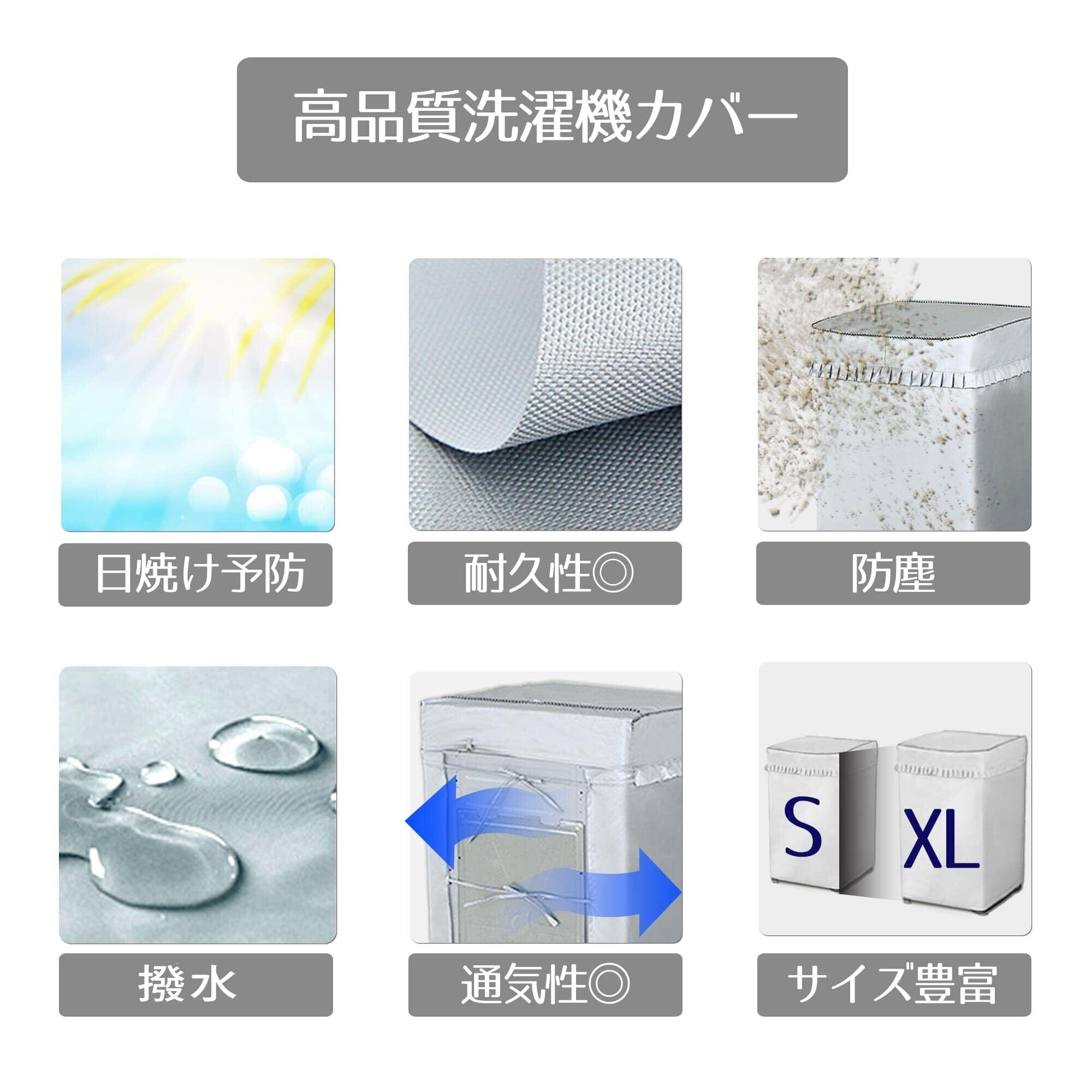 【機能性の充実】とても使いやすい洗濯機カバーとなります!お客様の声を反映し、よりシンプルに使いやすく丈夫です。サイズは洗濯機の大きさに合わせてS/M/L/XLの4種類をご用意いたしました!設置も簡単装着となります。撥水、防湿、日焼け止め、紫外線を遮断し洗濯機を保護いたします。