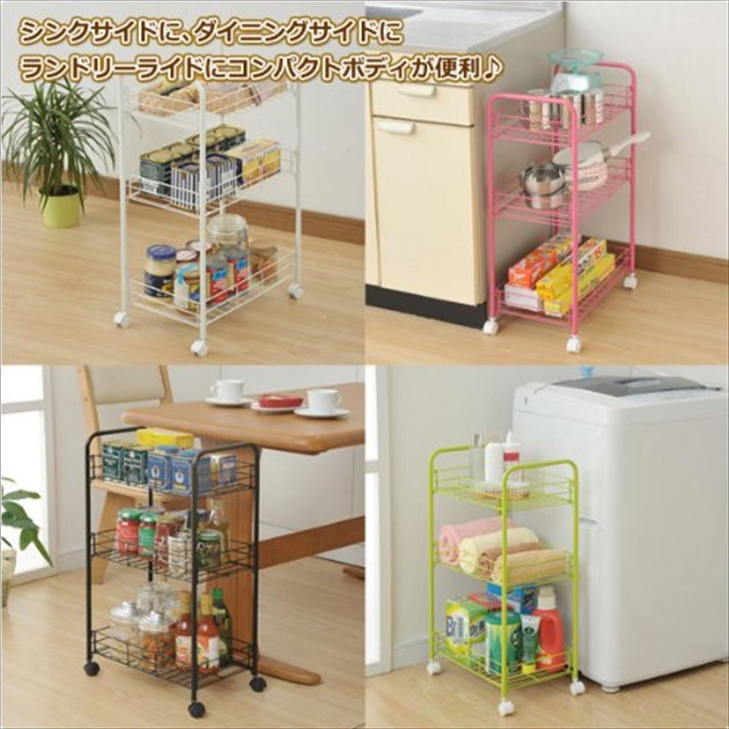 山善(YAMAZEN) スチールワゴン キャスター付き ホワイト RWR-3C(WH) 幅40×奥行25×高さ68cm
