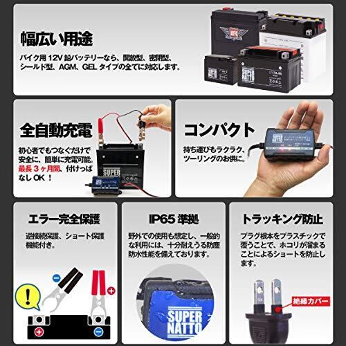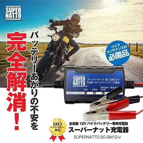 SUPER NATTO 全自動バイク用バッテリー充電器 12V専用 ■【車両ケーブル付属】【トリクル充電機能付】 密閉型・開放型・MF・AGM・GEL対応 軽量コンパクト BC-GM12-V