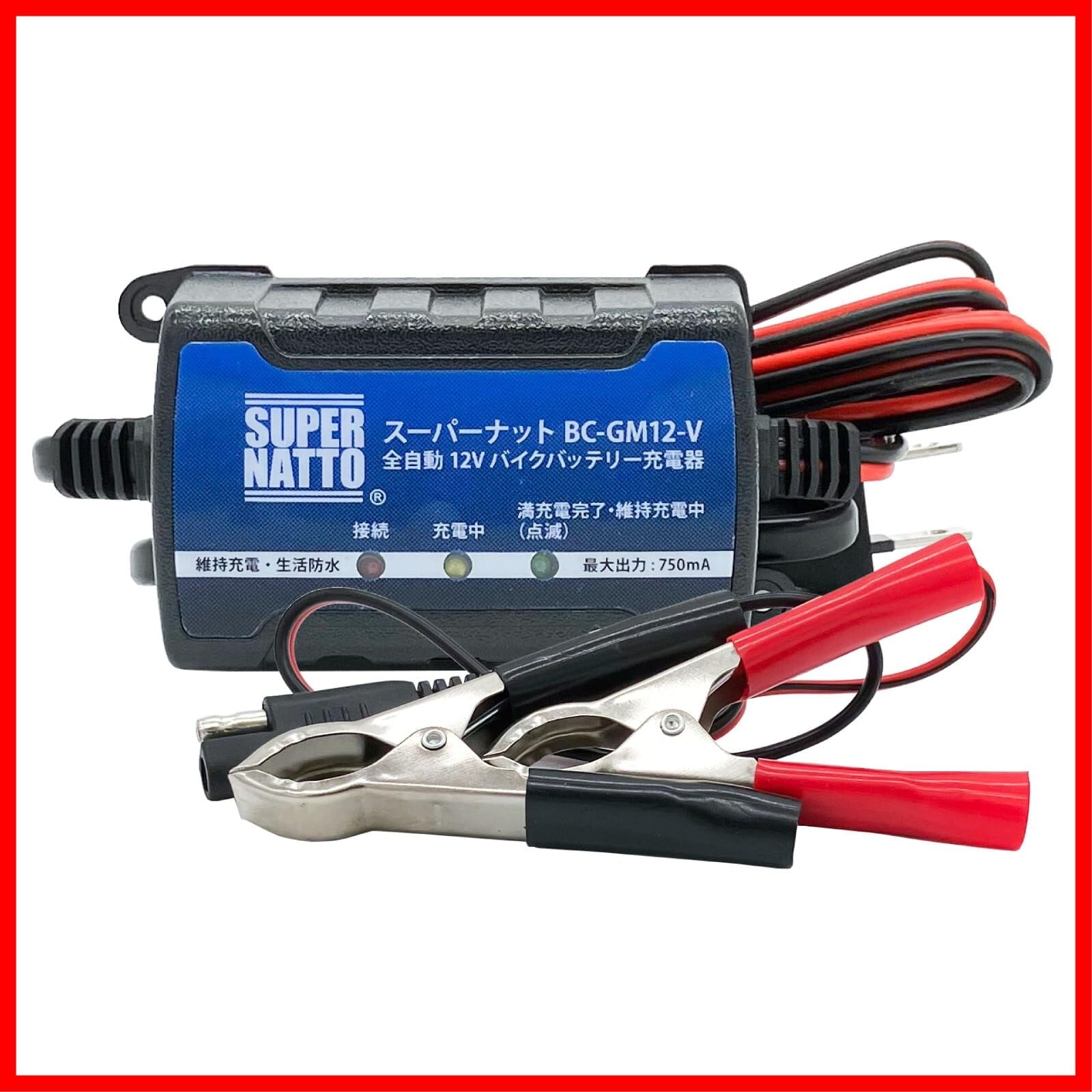 SUPER NATTO 全自動バイク用バッテリー充電器 12V専用 ■【車両ケーブル付属】【トリクル充電機能付】 密閉型・開放型・MF・AGM・GEL対応 軽量コンパクト BC-GM12-V | hananoki