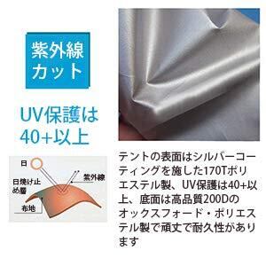 ポリエステル製で耐久---テントの表面はシルバーコーティングを施した170Tポリエステル製、UV保護は40+以上、底面は高品質200Dのオックスフォード・ポリエステル製で頑丈で耐久性があります。