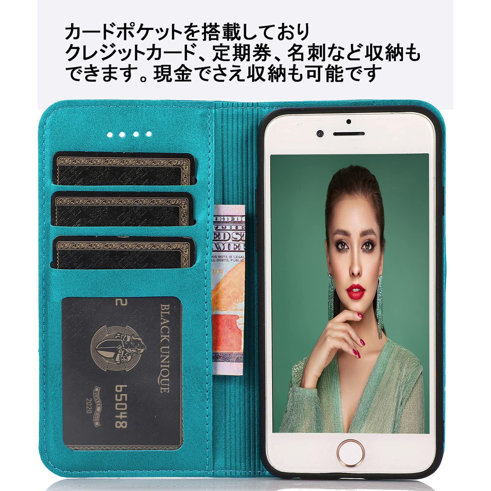 iPhone SE ケース 第3世代 iPhone SE(第2世代) ケース手帳型 iPhone7手帳ケース iPhone8手帳型 アイフォン7 手帳 スマホケース se3 カバー iPhone SE 第3世代 あいふぉん手帳型ケース カード収納 iphone case マグネット内蔵 スタンド機能 耐衝撃 薄型 軽量 防水 耐摩擦 シンプル 男女兼用 (iPhone7 / 8 / se 2020 / se 2022 4.7inch対応) ターコイズ