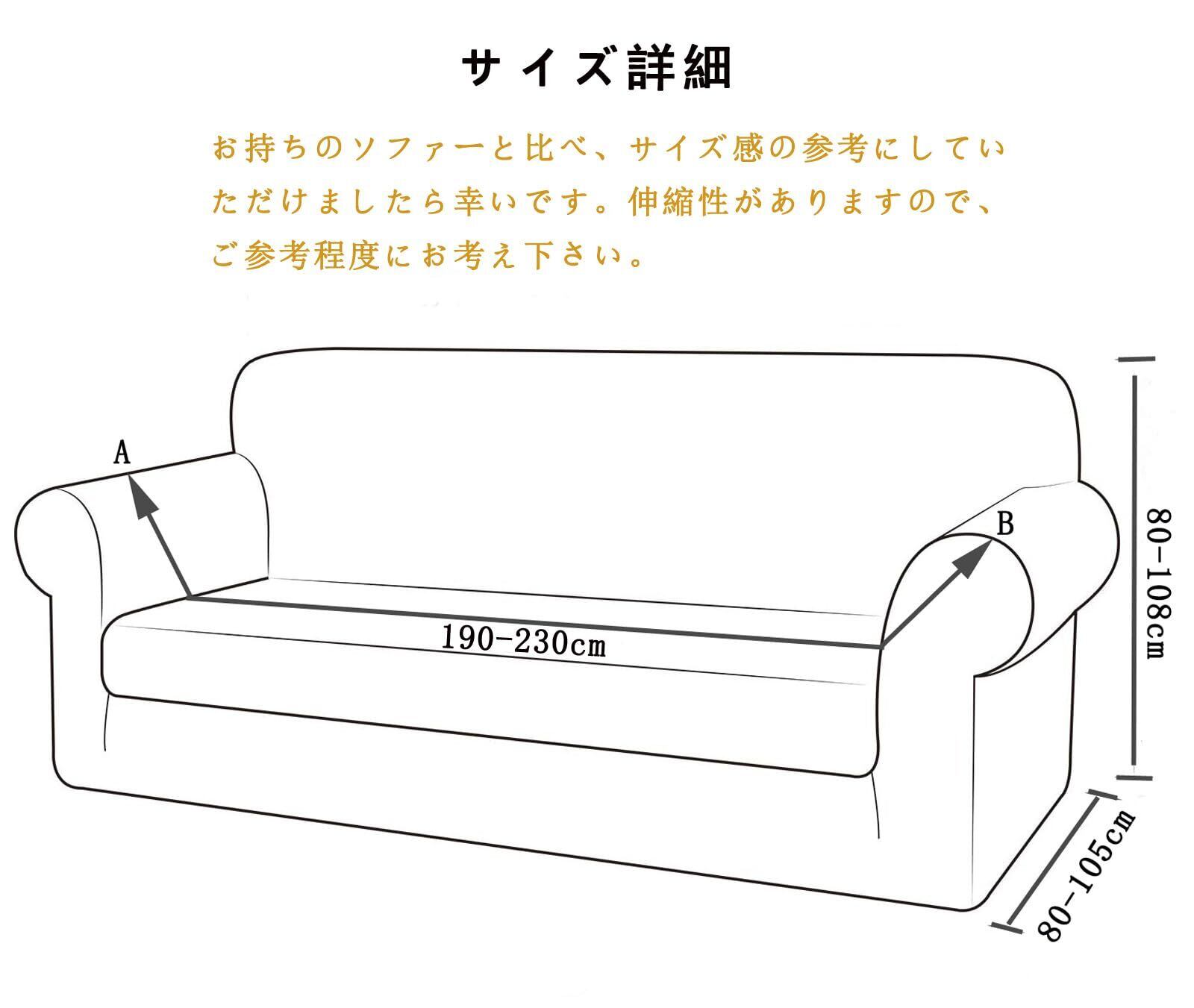 【素材】高品質ポリエステル+スパンデックス、伸縮素材、優しい肌触り感。サイズ:3人掛け190-230cm。ご注意: カバーはストライプのような柄があります。無地ではありません。ソファーカバーの細かい部分写真ご覧ください。