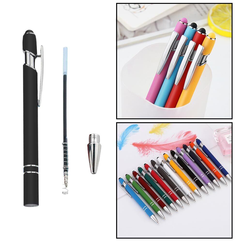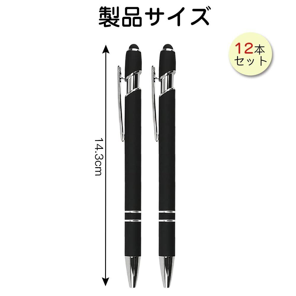 LIANHATA 12本セット タッチペン ボールペン付き 2 in 1 多機能ボールペン 黒インク スタイラスペン タブレット タブレット スマートフォン用 軽量 使いやすい (ブラック)