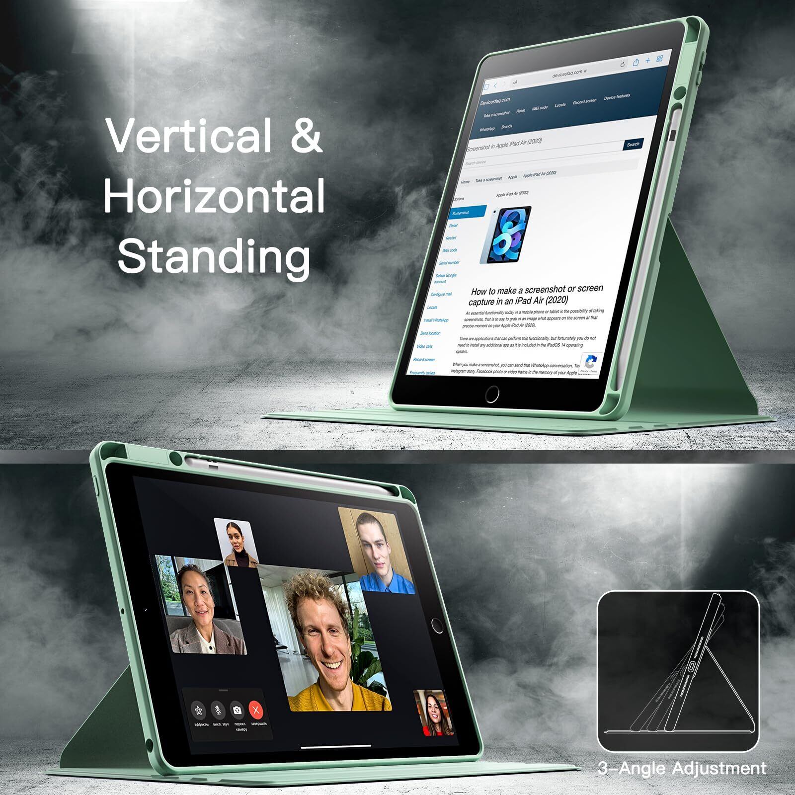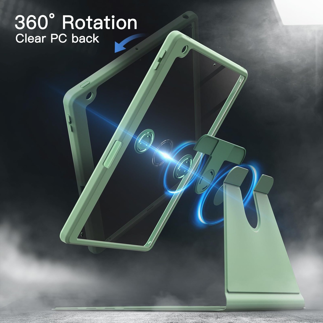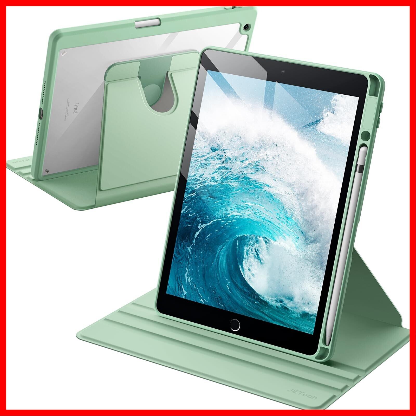 JETech 回転ケース iPad 9/8/7 (10.2インチ、2021/2020/2019モデル、第9/8/7世代用) Pencilホルダー付き 360°保護 スタンドカバー クリアバック 自動ウェイク/スリープ (抹茶グリーン)