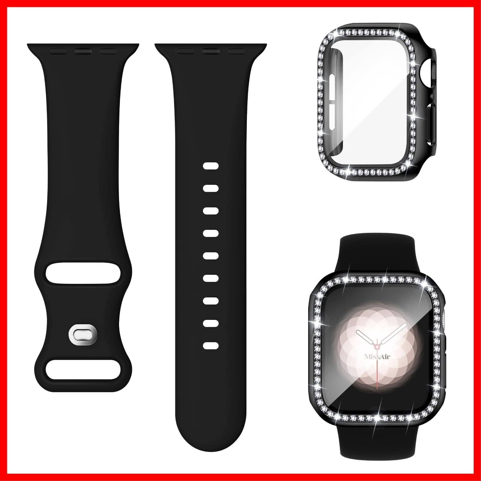 [Missair] コンパチブル Apple Watchと互換性のあるバンド シリコン アップルウォッチ バンド Apple Watch キラキラ カバー付き 互換用のApple Watch バンドとケース 一体型 全面保護 ダイヤモンド 光沢感 オシャレ レディース Series 6 5 4 SEの40mmに対応