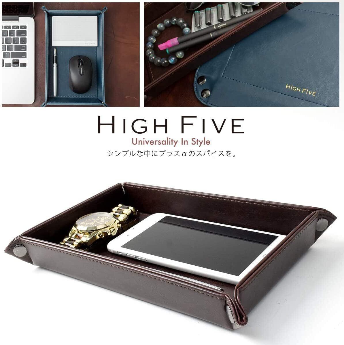 [HIGH FIVE] 長方形 レザートレー トレイ 小物入れ アクセサリー リモコン 鍵 腕時計 指輪 収納ボックス ダークブラウン