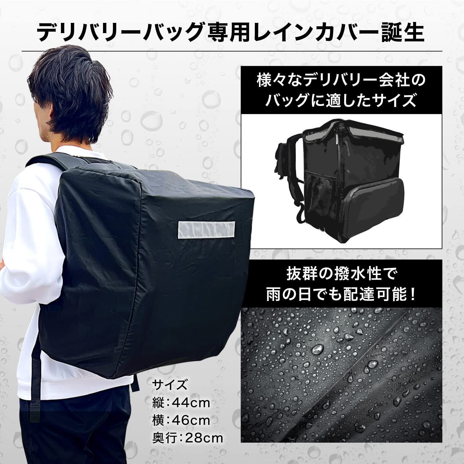 [YummyRun] デリバリーバッグ専用 レインカバー 防水 カバー ウバック デリバリーバッグ 大容量 反射材付き ※バッグではありません。