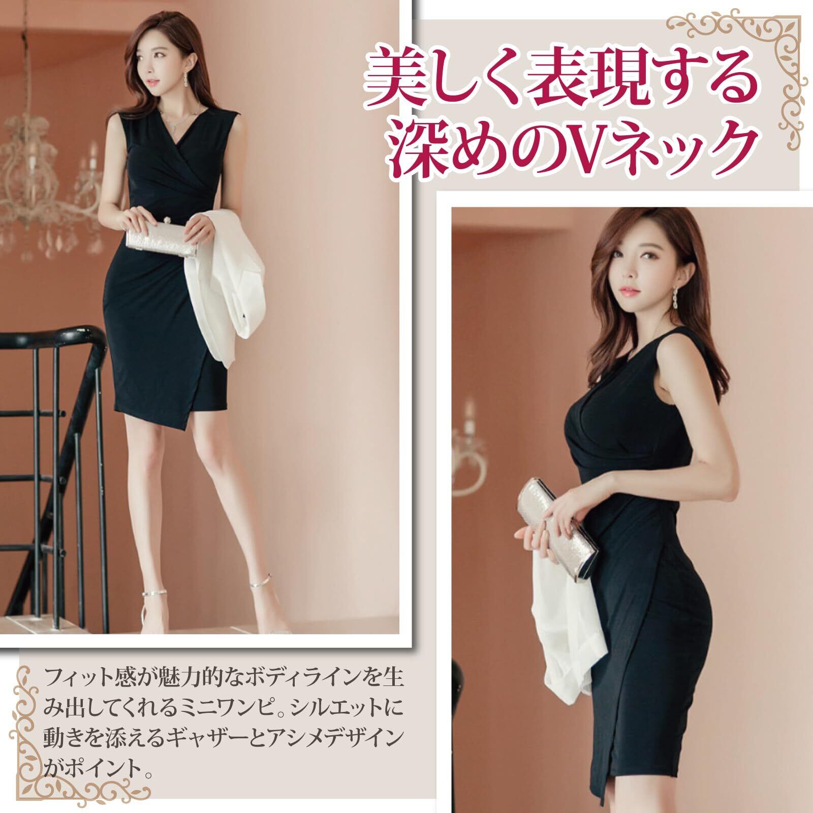[GRAXIA] 【グラシア】キャバドレス ミニドレス カシュクール ノースリーブ ワンピース キャバ嬢 キャバクラ ラウンジ Vネック ギャザー アシンメトリー レディース