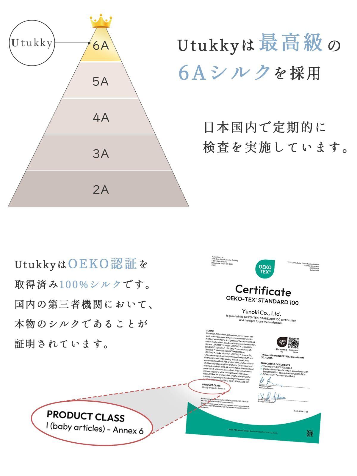 【OEKO認証の100%シルク】Utukkyは世界最高水準の安全基準OEKO認証を取り得済み、安心・安全なシルクです。表面は6Aランク洗えるシルクを100%使用して、お誕生日、母の日、父の日、バレンタインデー、敬老の日、クリスマス、新築祝い、結婚祝いなどのギフトにもおすすめです。