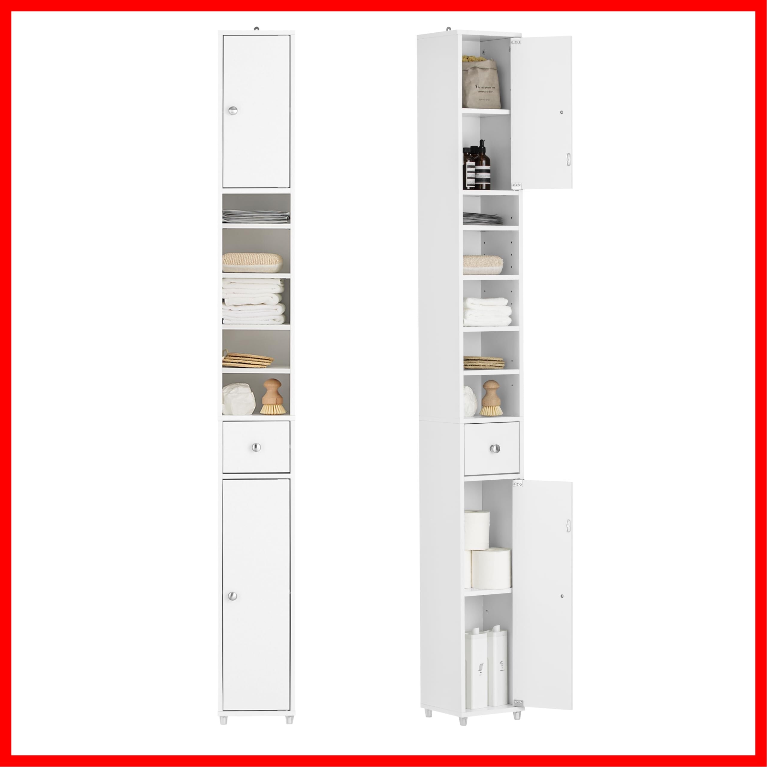 SoBuy 隙間収納 洗面所 収納 ランドリーラック スリム 幅20×奥行20×高さ180cm 可動棚 すきま 洗面所用キャビネット サニタリーラック ランドリー収納 キャビネット 食器棚(BZR34-W) | hananoki