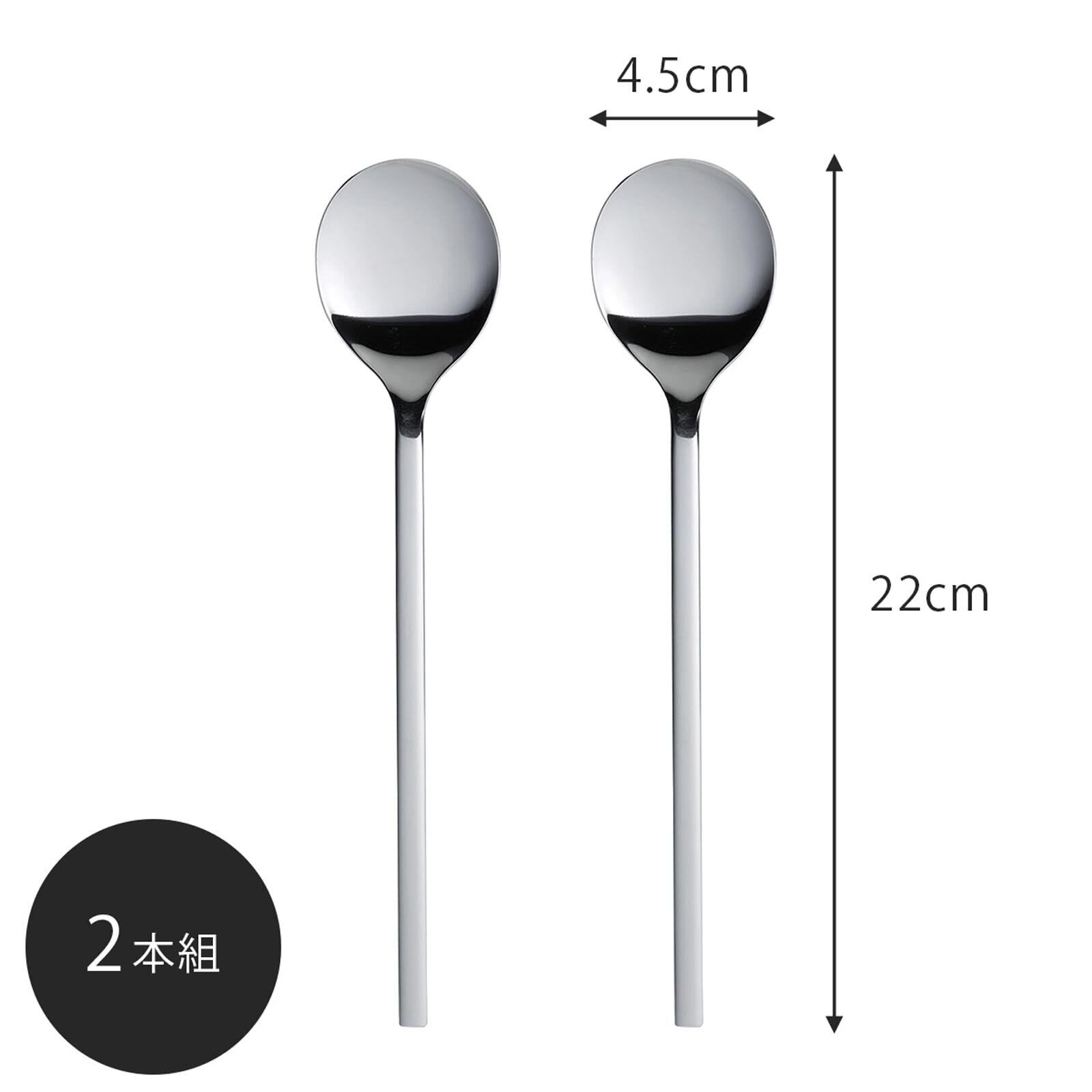 下村企販 韓国スプーン 2本組 【日本製】 食洗機対応 全長22cm シンプル 丸型 柄が長い ビビンバスプーン ディナースプーン 韓国料理 韓国食器 スープ チャーハン ステンレス 燕三条 45141