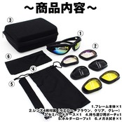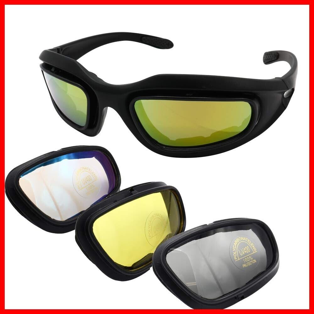 [KAKIZAKI] バイク用 サングラス ゴーグル 自転車 スポーツ 防風 紫外線カット (本体フレーム レンズ4種 メガネ拭き 収納ケース)