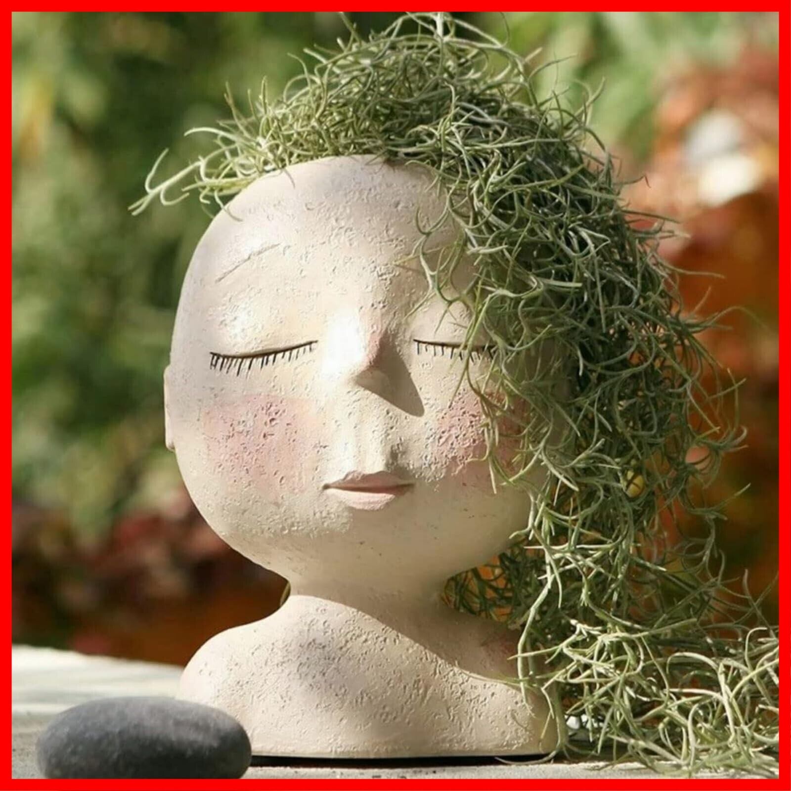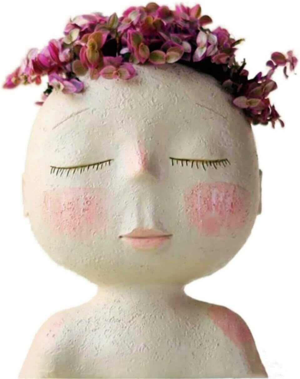 ヘッドプランター 植木鉢 顔 フェイスプランターポット 可愛い女子の顔プランター 萌えフラワーポット フェイスプランターポット 花瓶 観葉植物の鉢 フェイス花器 樹脂 サボテンプランタ 屋内外植物用 水抜き穴付き (閉じた目) | hananoki