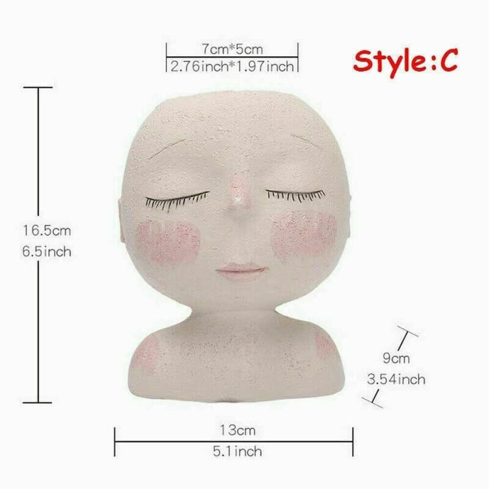 ヘッドプランター 植木鉢 顔 フェイスプランターポット 可愛い女子の顔プランター 萌えフラワーポット フェイスプランターポット 花瓶 観葉植物の鉢 フェイス花器 樹脂 サボテンプランタ 屋内外植物用 水抜き穴付き (閉じた目)