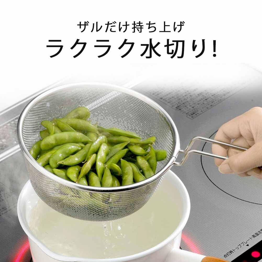 下村企販 ざる ゆであげザル 18cm 【日本製】 食洗機対応 鍋用 まとめて湯切り 14メッシュ 持ち手付き 丈夫な作り 深型 野菜 ブロッコリー にんじん じゃがいも 便利でごザル ステンレス 燕三条 21568 | hananoki