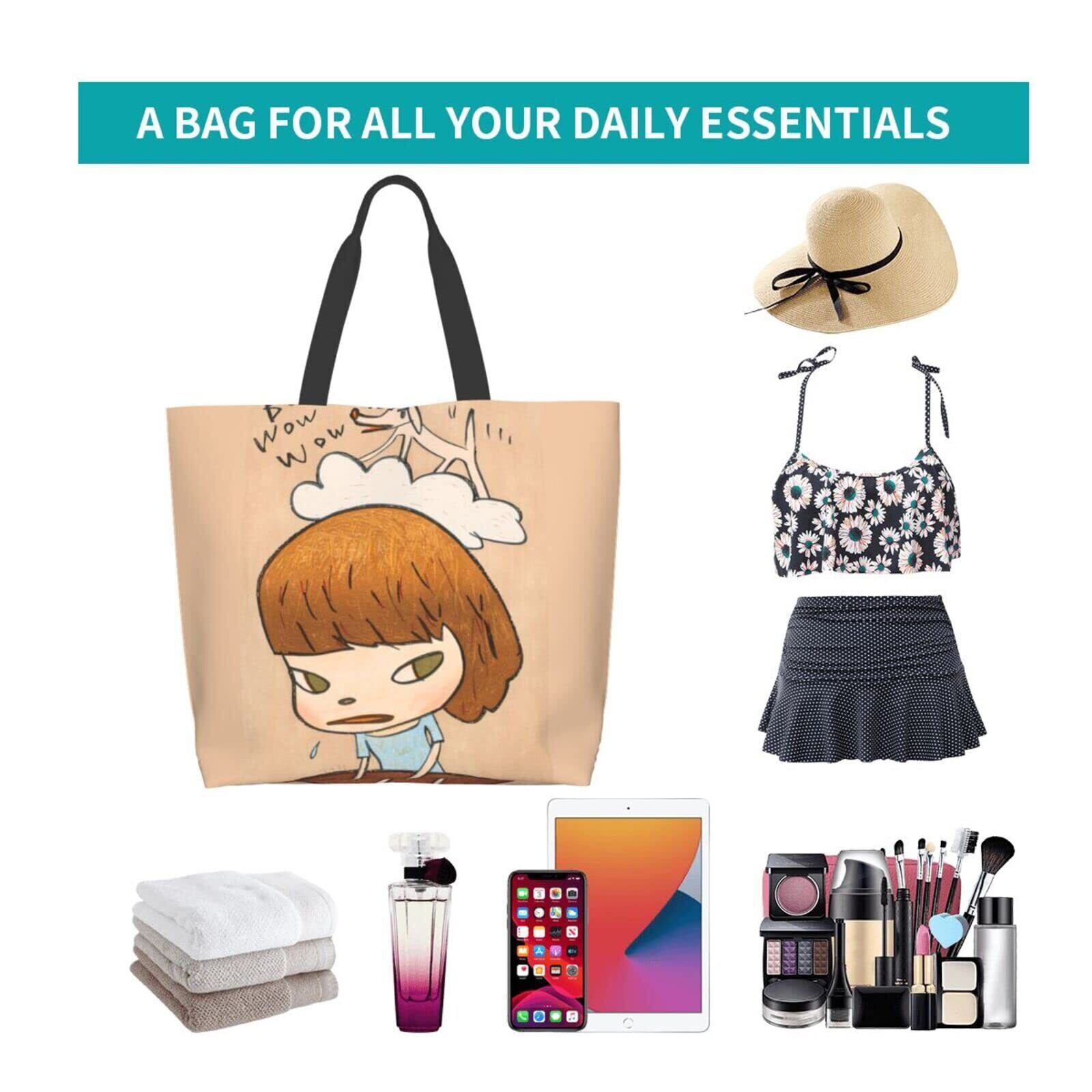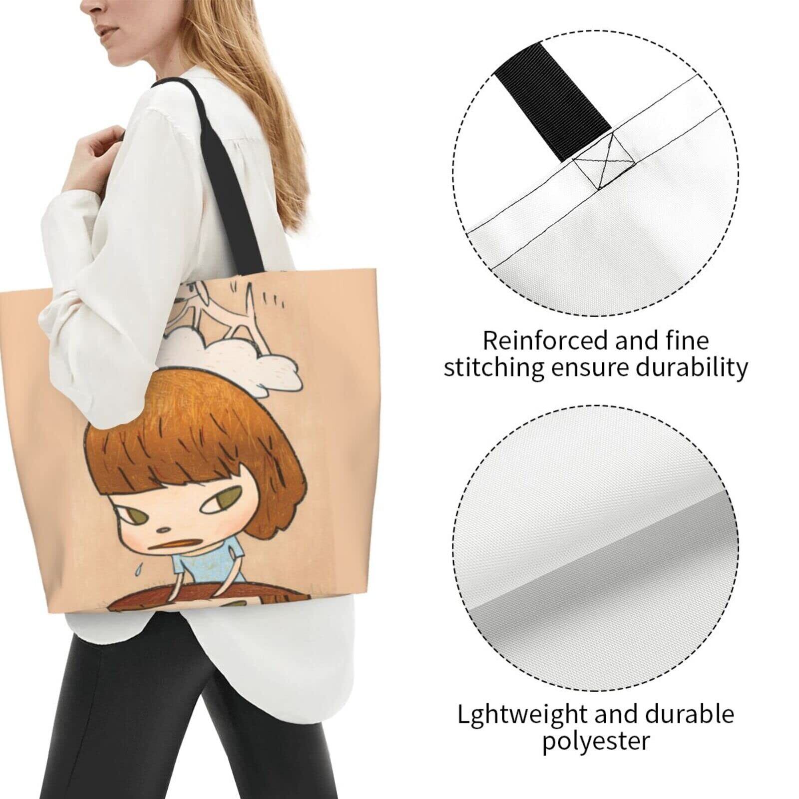 [MINIER] ならよしとも 奈良美智 エコバッグ レディーストートバッグ ショルダーバッグ 大容量買い物バッグコンビニバッグ 軽量防水 手提げバッグショッピングバッグ多機能ポータブル折りたたみ収納バッグ。幅さ50cmx高さ40cmx厚さ15cm