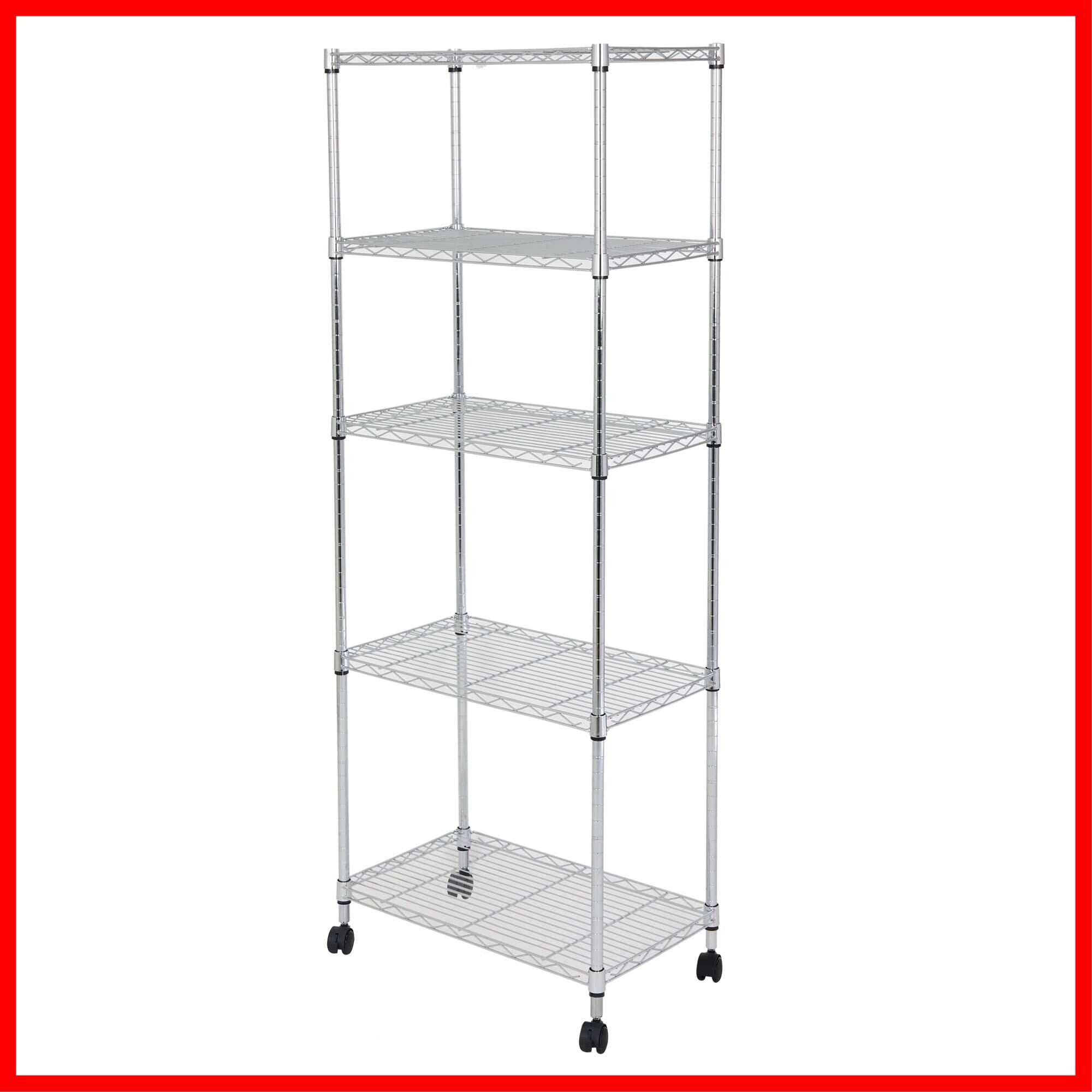 ドウシシャ メタルルミナスラック キャスター付き スチールラック幅60 5段 EL19-15605 軽量で組立簡単工具いらず 幅59.5×奥行き34.5×高さ155.0cm 棚板耐荷重80kg 全体耐荷重400kg 頑丈 防錆加工 ポール径19mmパーツ対応 キッチンラック 隙間収納 | hananoki