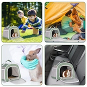 大きく開ける正面窓がうさぎをスムーズに出し入れ。お出かけキャリーの正面にクリア窓があり、中のペットの様子を見たり、病院で診察を受けたりすることが可能。