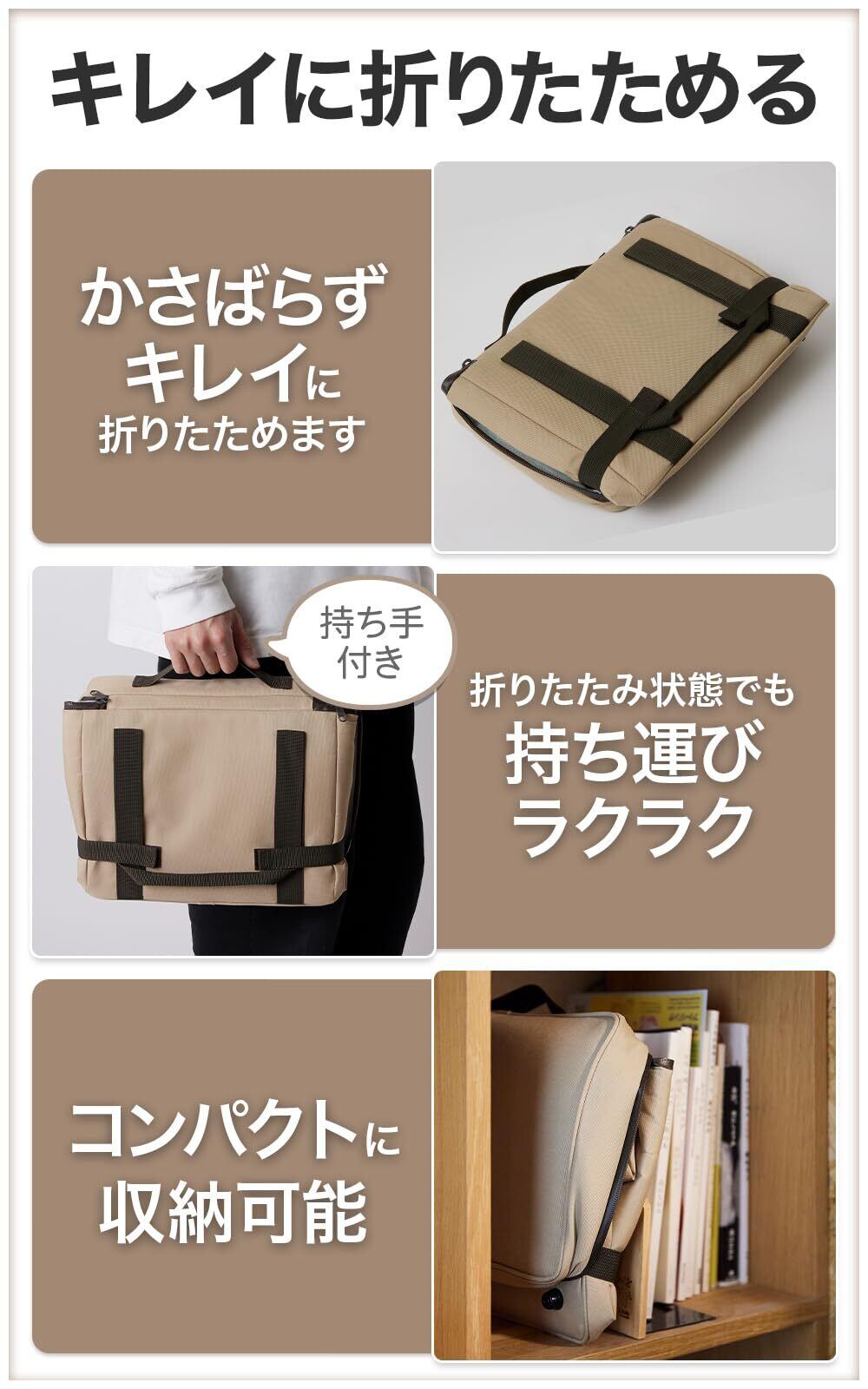 【キレイに折りたためて持ち運べる】かさばらずキレイに折りたためるので、コンパクトに収納可能です。持ち手付きだから、折りたたみ状態でも持ち運びがスムーズにできます。