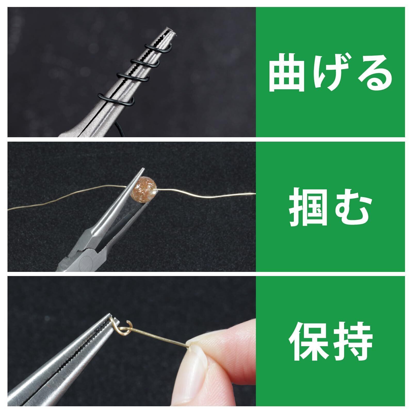 特徴:先端を細長く仕上げてありますので、極端に狭い部分での作業に威力を発揮する工具です。先端には滑り止めの溝が付いており、狭く曲がりくねった場所でもしっかりと物をつかむことが出来ます。オリジナルのアクセサリー作りを楽しんでください