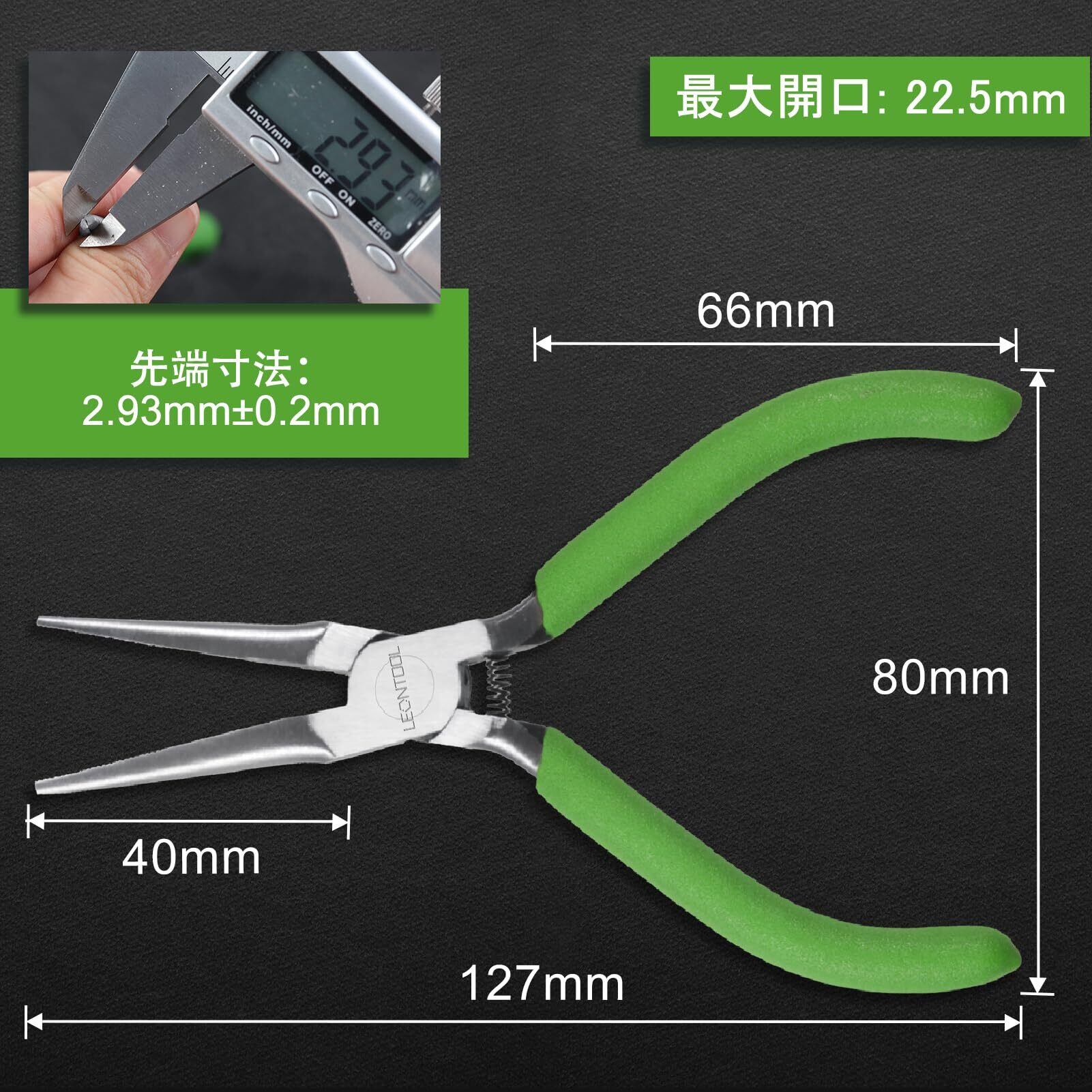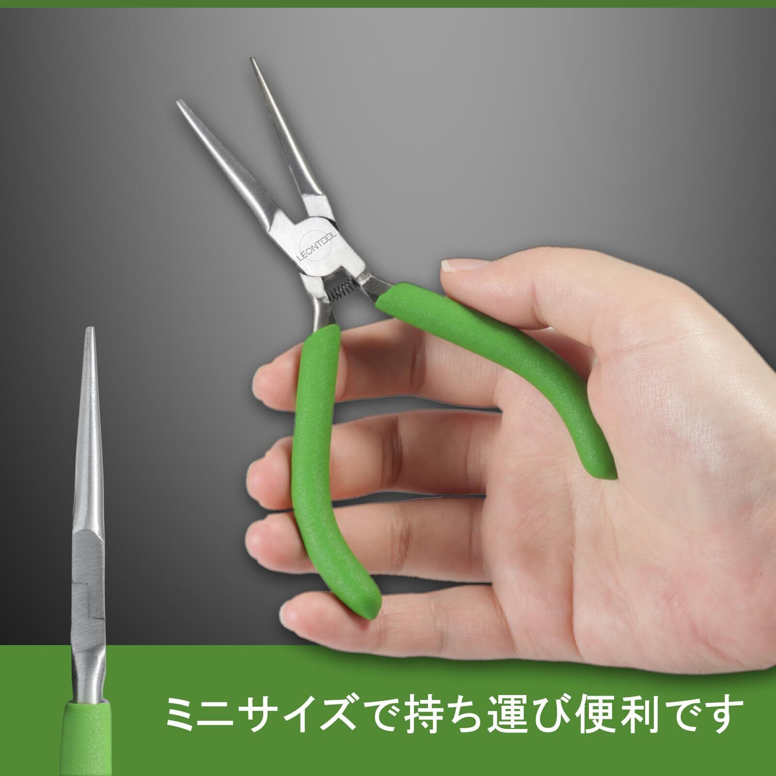 LEONTOOL ミニ先細ラジオペンチ 先長ラジオペンチ マイクロ先細ペンチ リードペンチ 平ヤットコ ギザ付 バネ付 127mm 小型 軽量 精密作業 アクセサリー用 ジュエリー製作 手作り 手芸用品 DIY プロ ホビー 工具 掴む 曲げる 切る 挟む ねじる 家庭 細かい作業