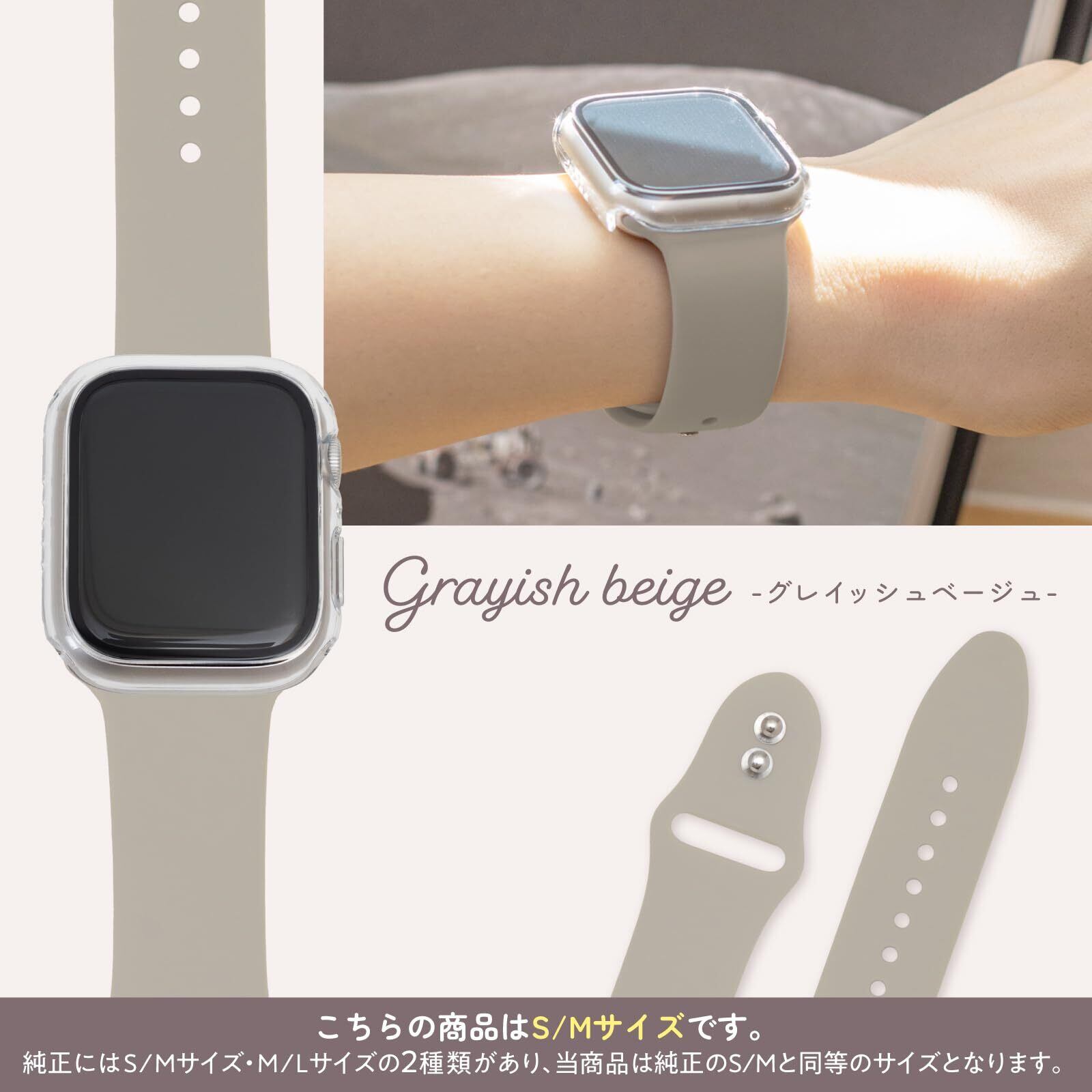 ▶▶▶【バンドサイズ】:S/Mサイズ 。純正のS/Mサイズ(短い方)と同等のサイズです。▶▶▶【手首周り】:約13~17cmまで対応 ▶▶▶【サイズ詳細】:ページ下部に掲載しております。購入前にご確認ください。▶▶▶【商品内容】:シリコンバンド×1本▶▶▶【厳選された「9色」】:「mochitto -もちっと- シリコンバンド」は、"くすみカラー"を中心に、カジュアルでもビジネスでも活用しやすい、上品な9色のカラーバリエーションをご用意しました。▶▶▶【"もちサラ"触感】:軽量でサラサラ触感の上質シリコンを採用することにより抜群の着け心地になりました。