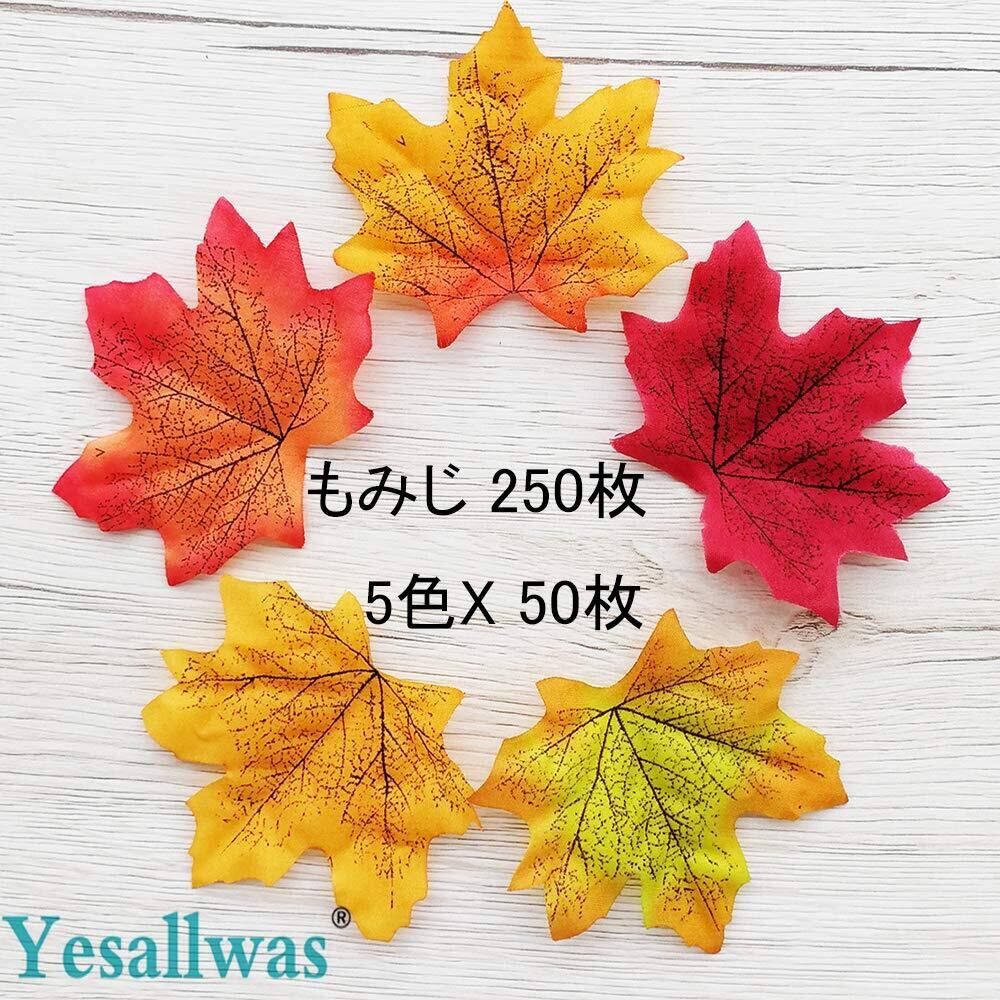 Yesallwas 人工 紅葉 250枚セット もみじ 造花 5色 X 50枚 人工観葉植物 造花 楓の葉 紅葉の季節 人工葉 ハロウィーン 飾り 結婚式 秋の装飾 DIY 撮影小道具 発表会 舞台 もみじ 5色X 50枚 (紅葉 250枚)