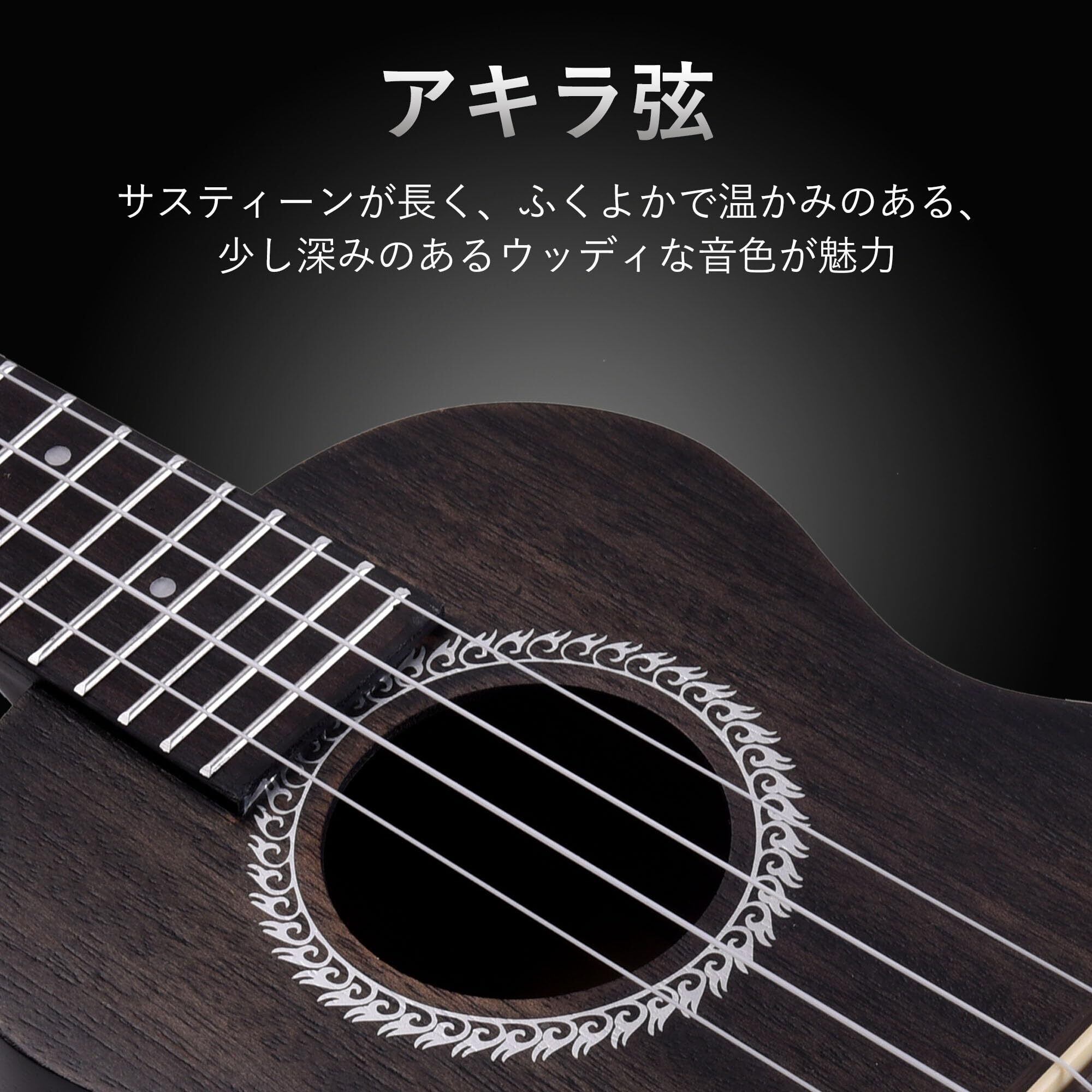 上質な素材が生み出す、甘く明るいサウンド: ADMウクレレのマホガニー共鳴箱とAquilaナイロン弦は、甘く明るいサウンドを生み出します。セミオープン・フィニッシュは、塗装による音色への影響を効果的に抑え、頑丈な構造と滑らかなタッチの両方を提供します