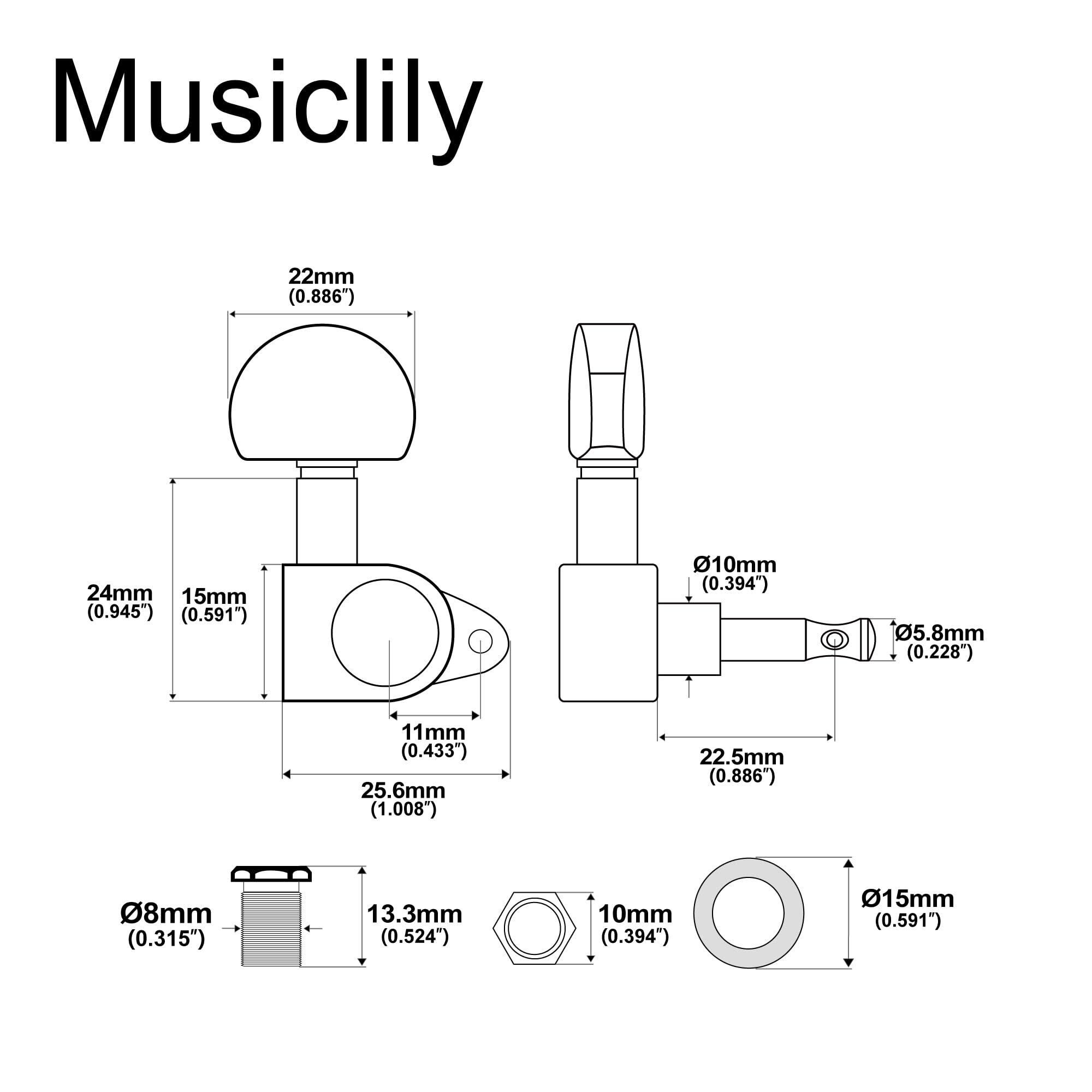 Musiclily Basic L3+R3ギターペグ糸巻 LPレスポールエレキギター/アコースティックギター用、ゴールド