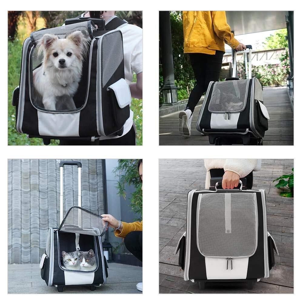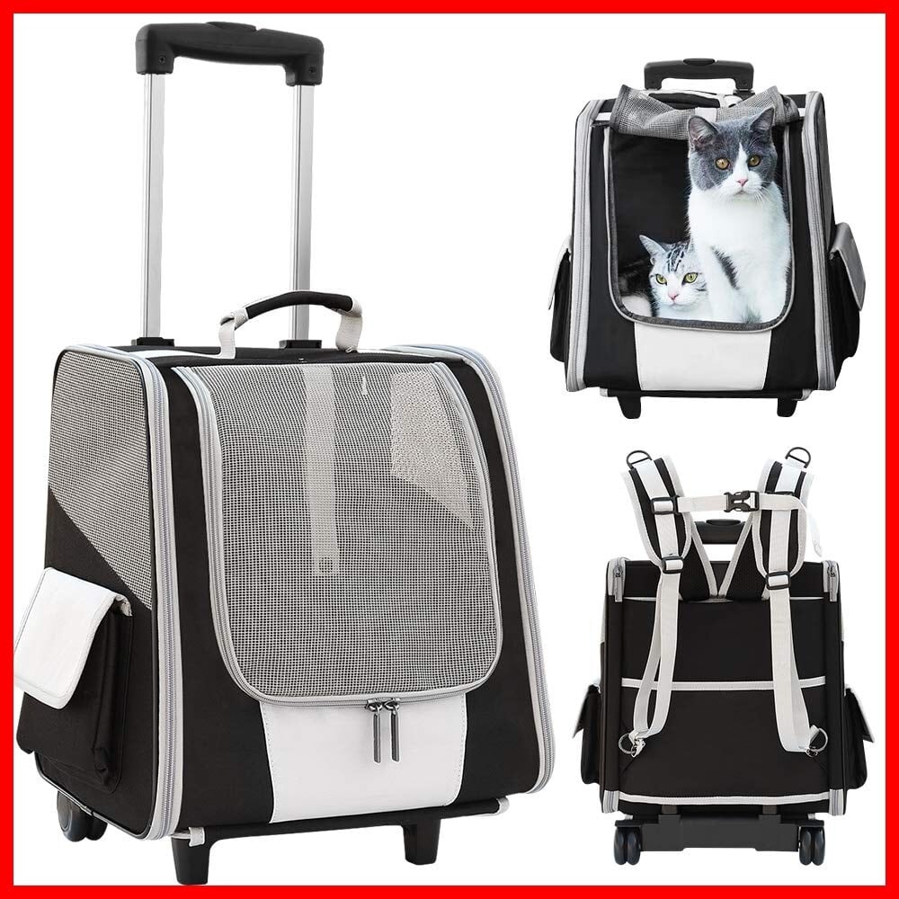 Tresbro 犬猫用 ペットキャリー キャスター付き 猫 バッグ リュック 4in1多機能 ペットキャリーカート 犬キャリーバッグ 猫きゃりーバッグ リュック 手提げ 車載お出かけのペットバッグリュック 猫・小型犬 ドライブ/キャンピング/旅行/通院/災害避難用 ペットバッグ ブラック | hananoki
