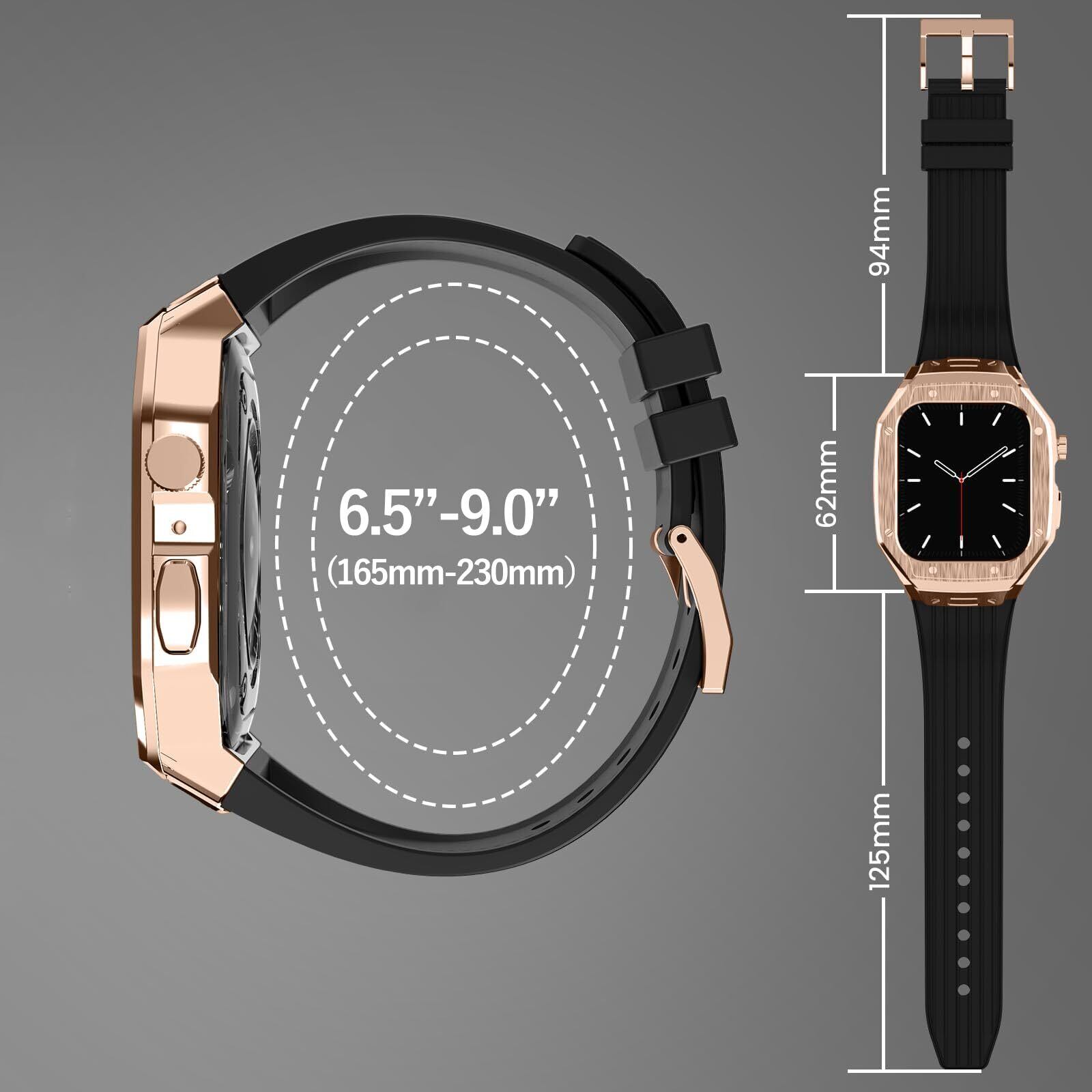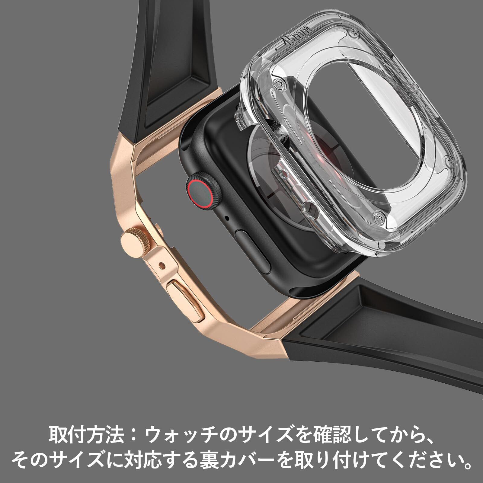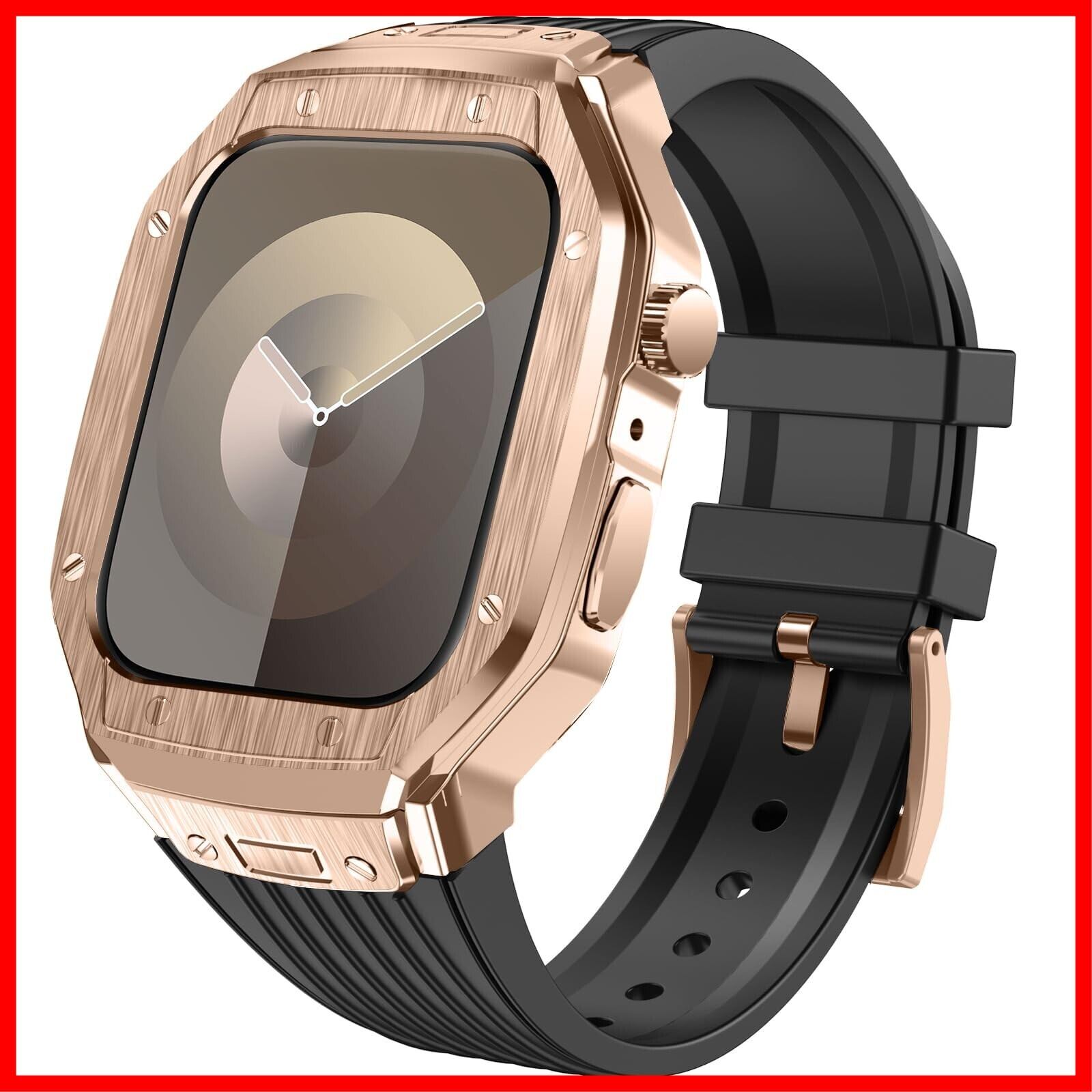 YOFITAR for Apple Watch バンドとケースと背面ケースの3in1一体型デザイン 45mm/44mm apple watch 一体型バンド Series 9/SE/8/7/6/5/4対応 メンズ かっこいい アップルウォッチ バンド カバー付き アクセサリー(45mm/44mm,ローズゴールドケースとブラックベルト) | hananoki