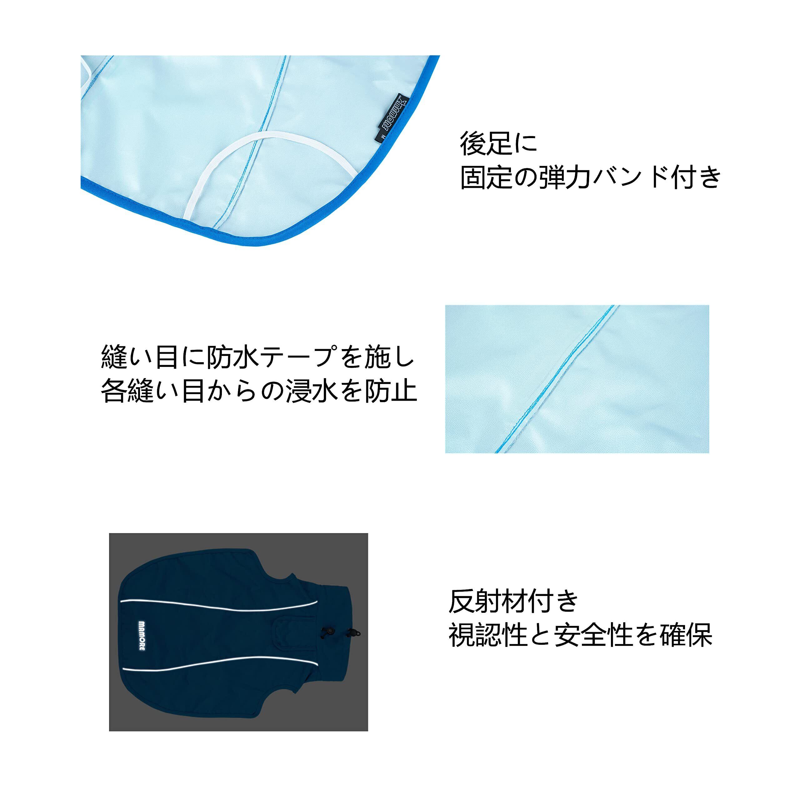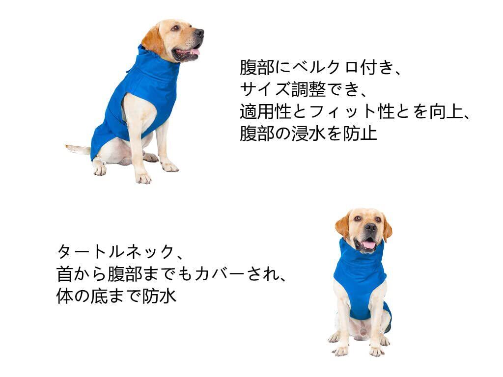 【防水の工夫設計】首部のタートルネックはドローコードで調整でき、締めると雨水が犬の首に沿って毛皮に浸透することを防げます。首から腹部までもカバーされ、体の底まで防水!