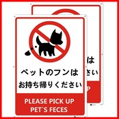 柔らかい言葉で犬、ペットの飼い主に、ペットの糞尿を清掃するように注意を喚起します。