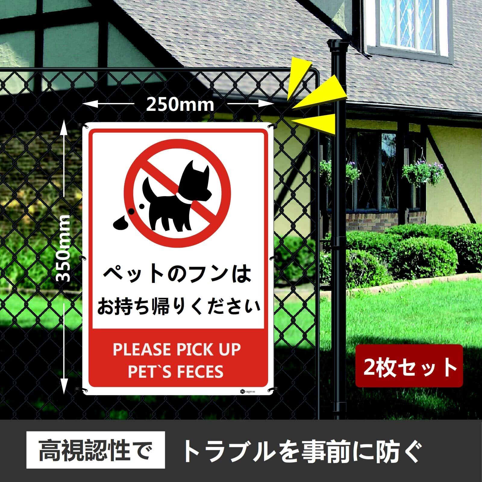 Seagron ペットのフンはお持ち帰りましょう 看板 犬 フン 犬の糞禁止看板 【Mサイズ】犬の糞尿厳禁 警告看板 注意サイン ペットのフン 糞 プレート 安全標識 1mm アルミ製 25cm×35cm 屋外 防水 2枚セット KAN03A | hananoki