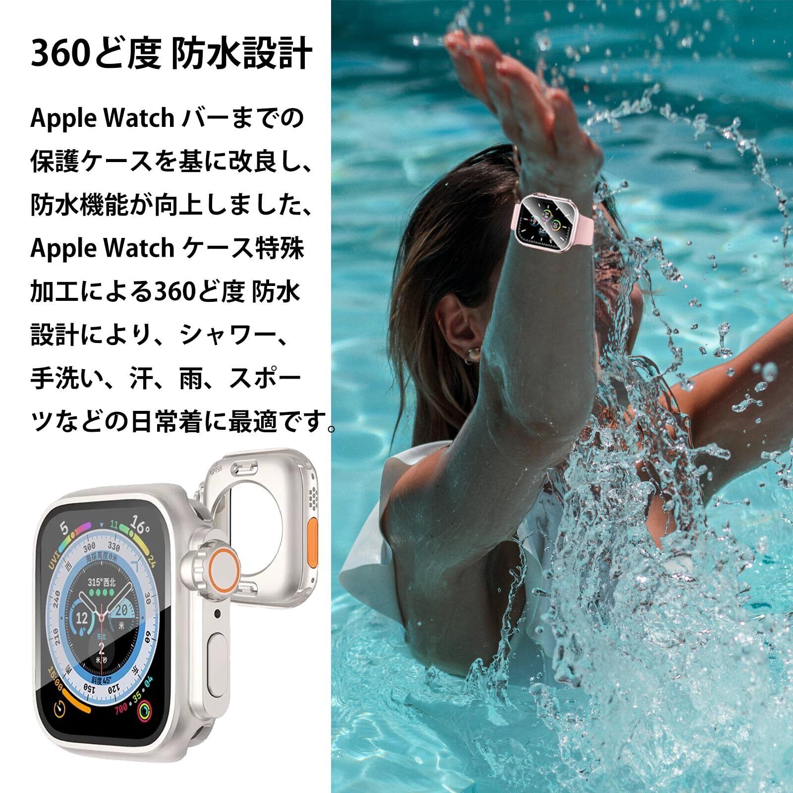 【360ど度 防水設計】Apple Watch バーまでの保護ケースを基に改良し、防水機能が向上しました、Apple Watch ケース特殊加工による360ど度 防水設計により、 シャワー、手洗い、汗、雨、スポーツなどの日常着に最適です。
