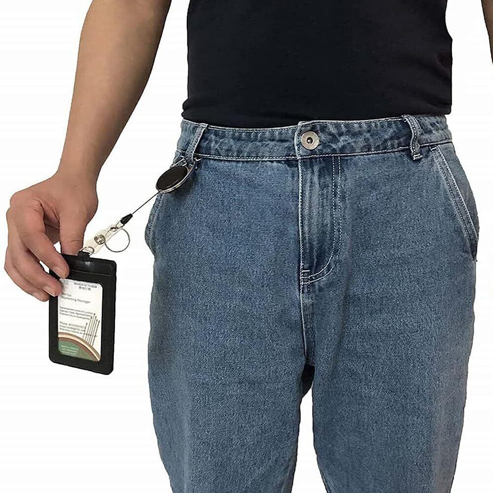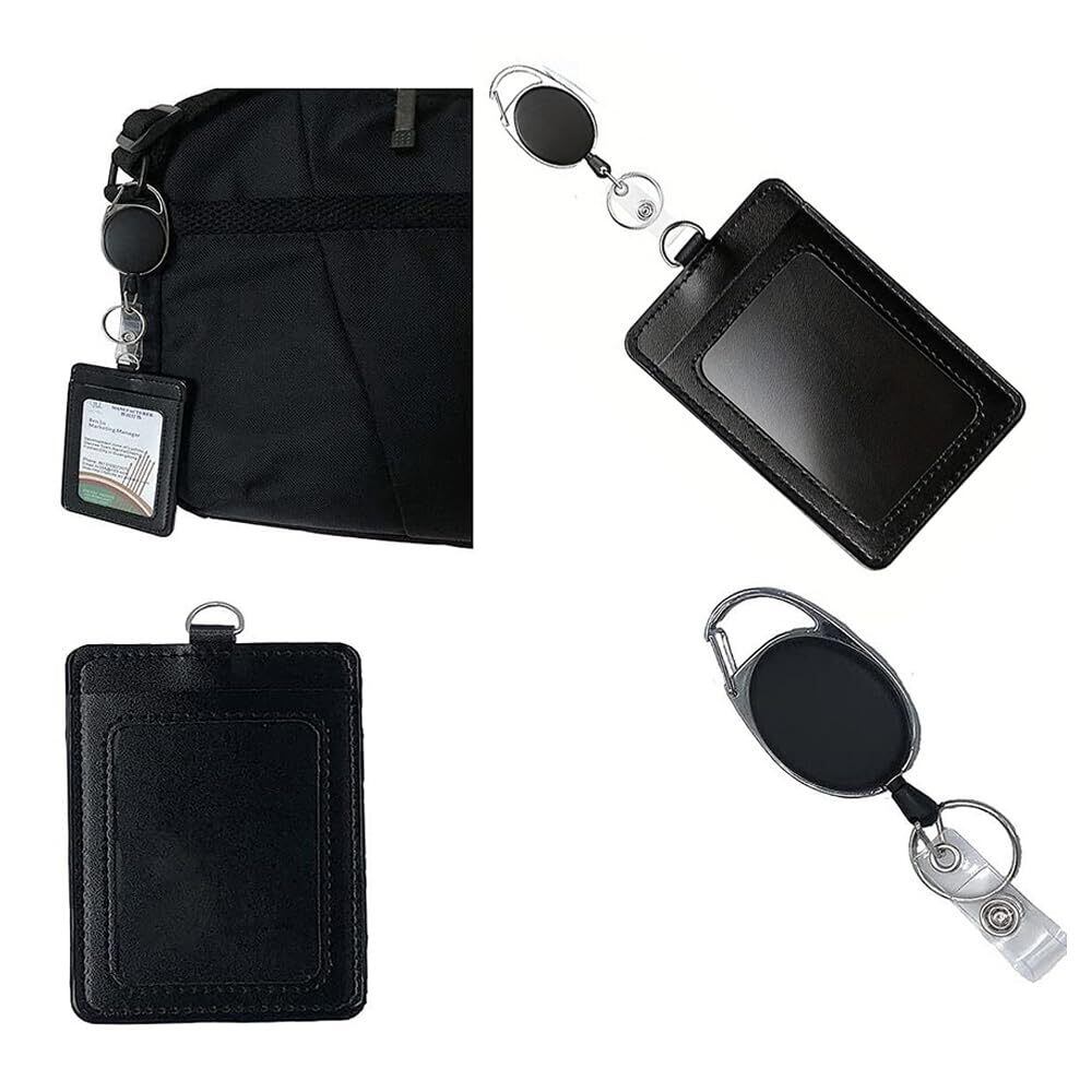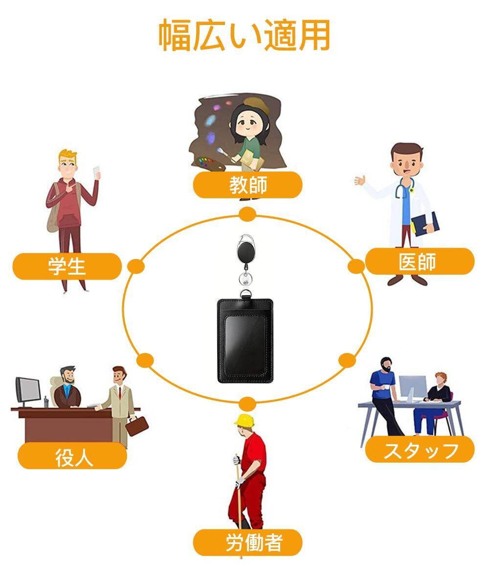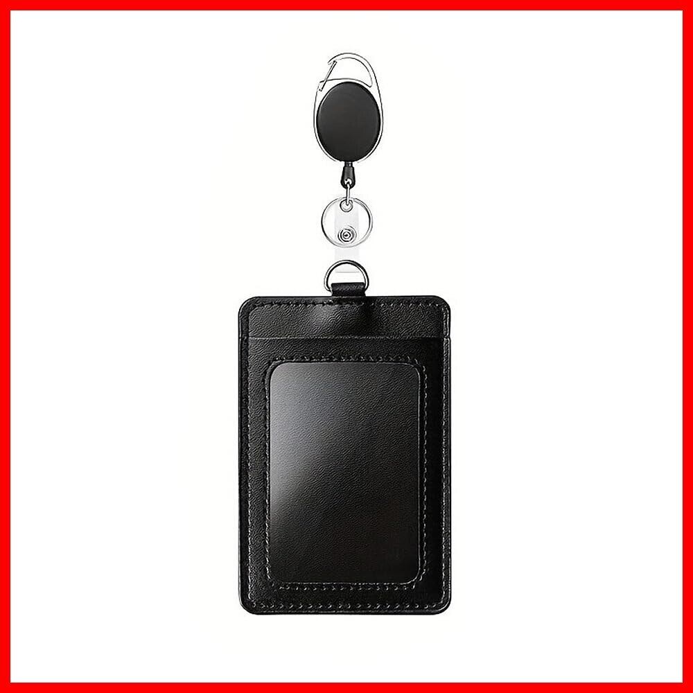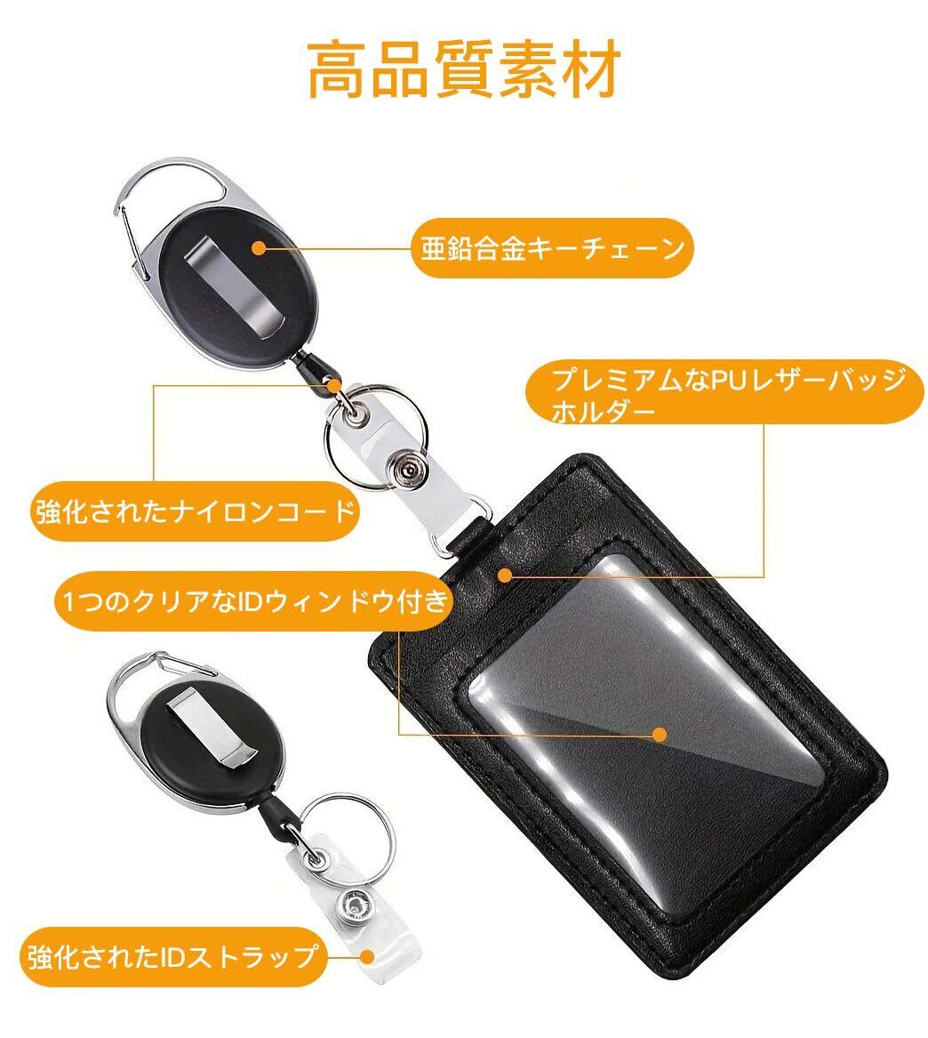 LOYELEY 伸縮 定期入れ リール付き パスケース カード入れ ICカード ネーム IDカードケース IDカードホルダー PUレザー 軽量 薄型 おしゃれ スキミング防止 通学 通勤 電車 男女兼用 ブラック | hananoki